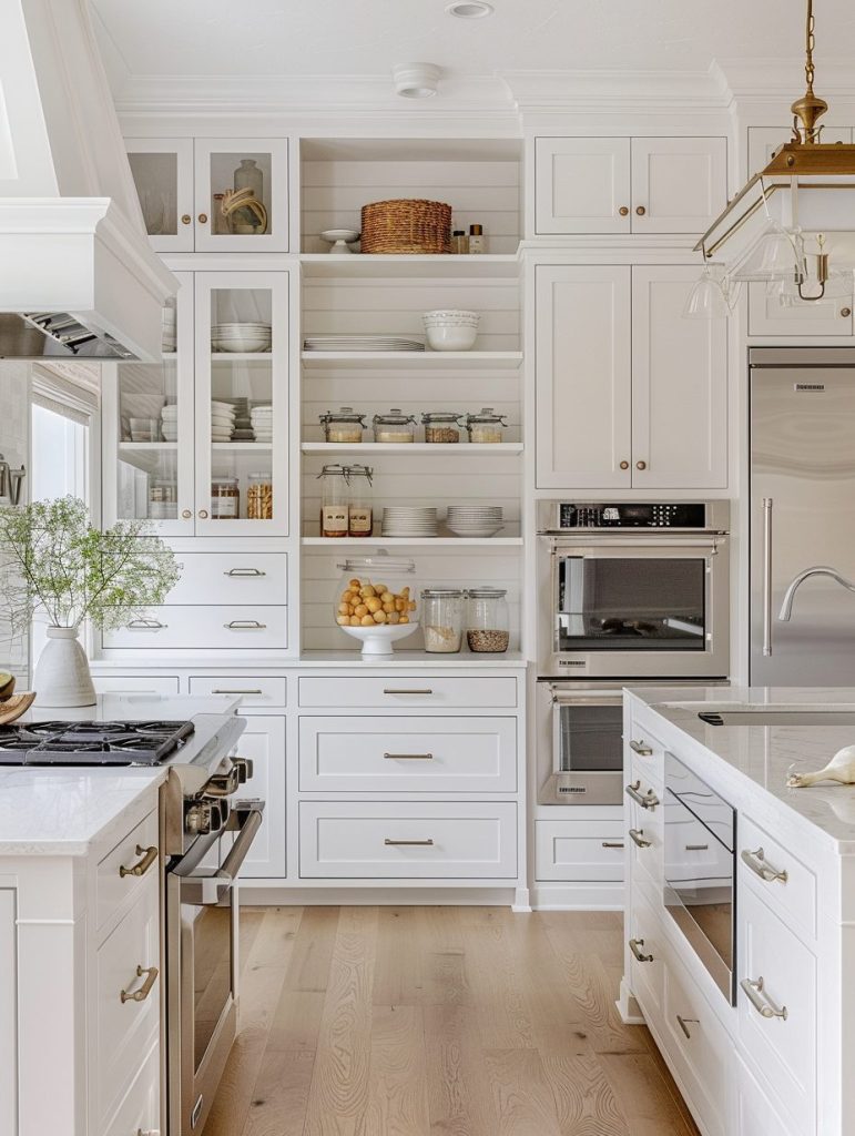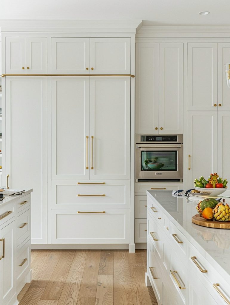 Classic white pantry cabinets offer a timeless touch to any kitchen, bringing a fresh and versatile charm.