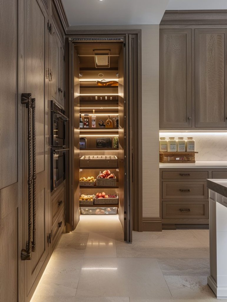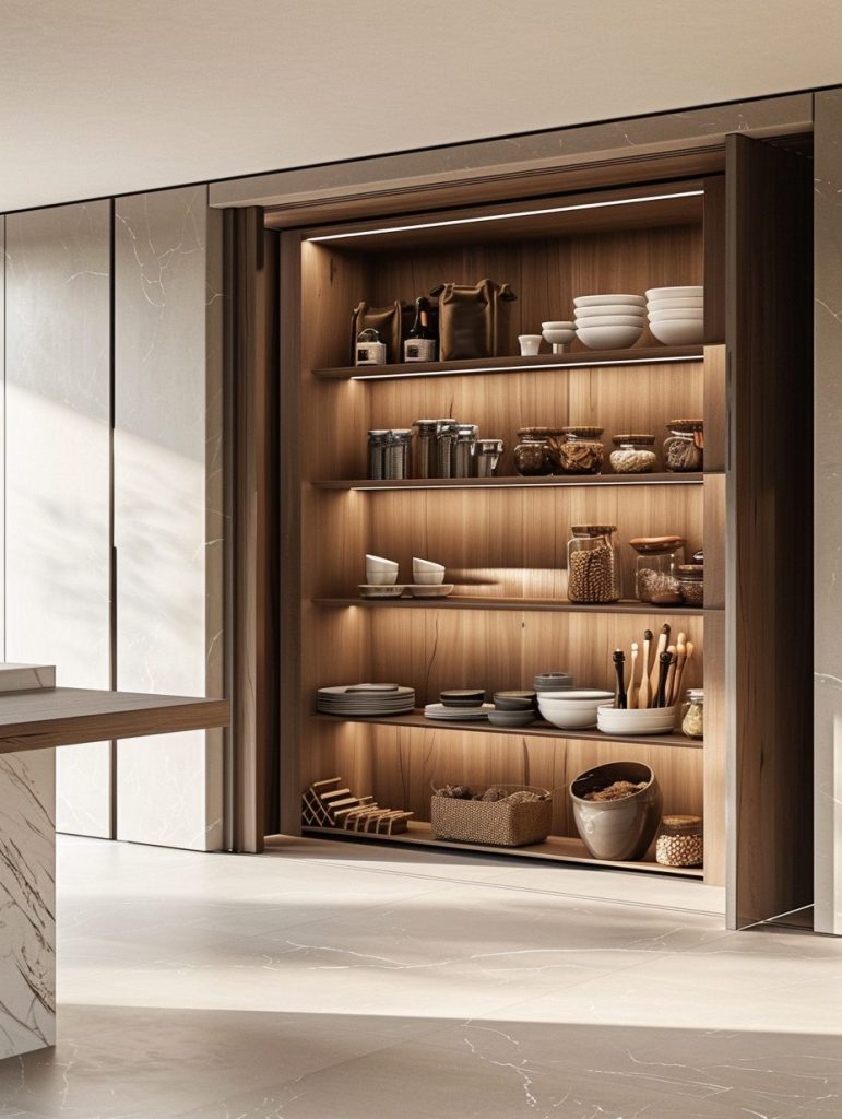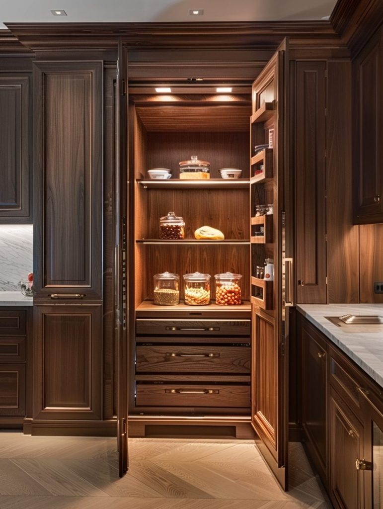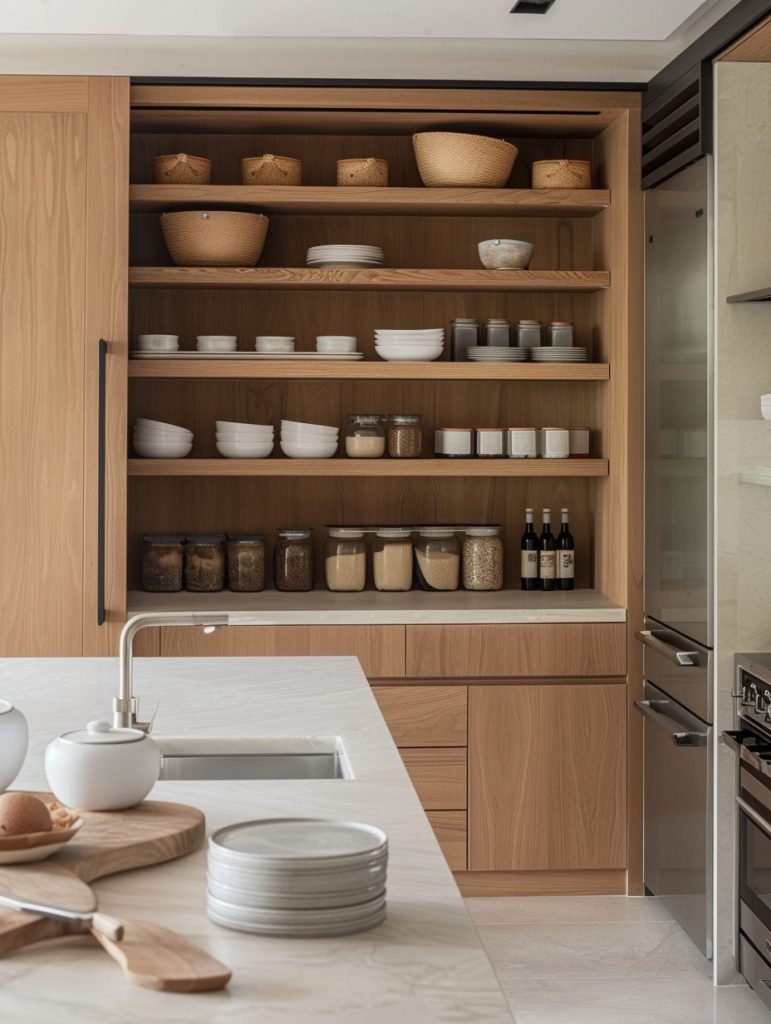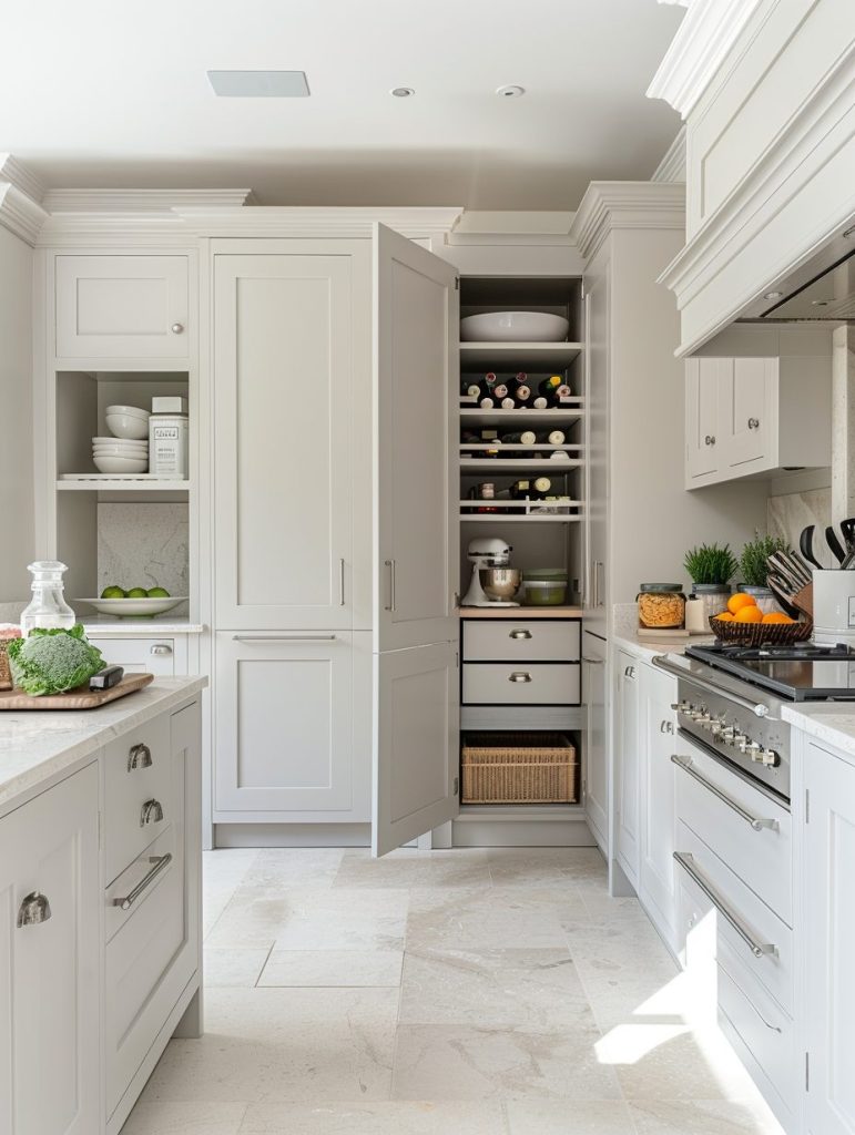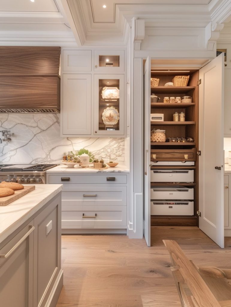 Built-in pantries offer a seamless and elegant addition to any kitchen design, providing both sophistication and practicality.