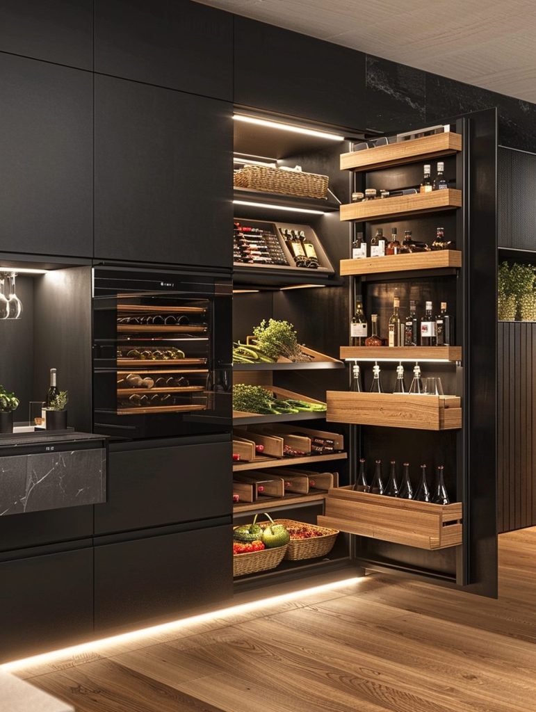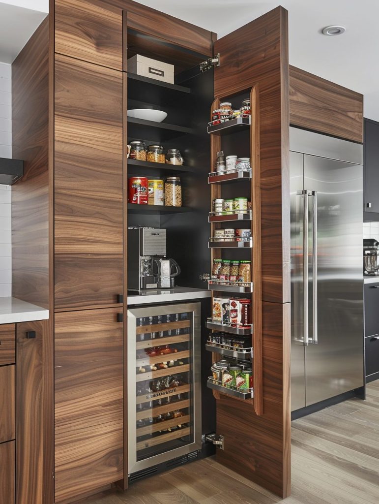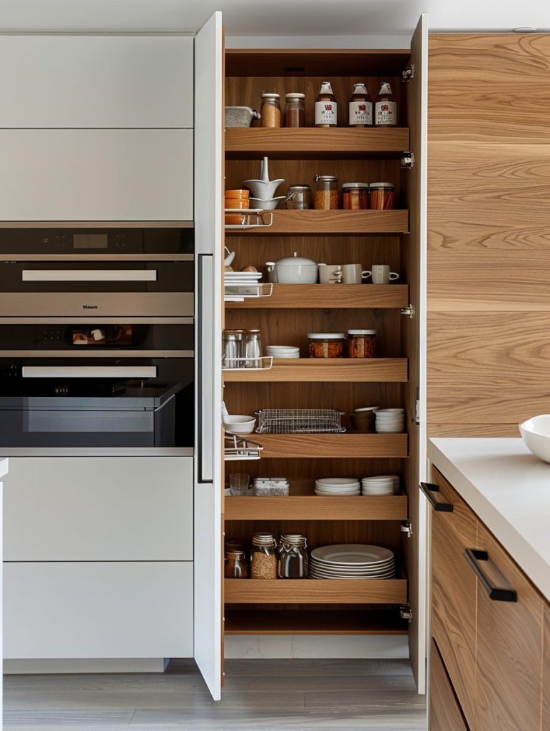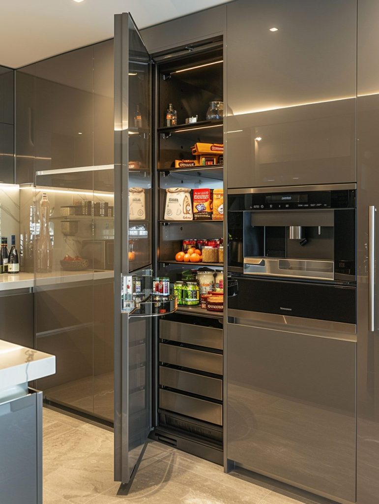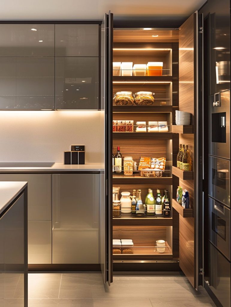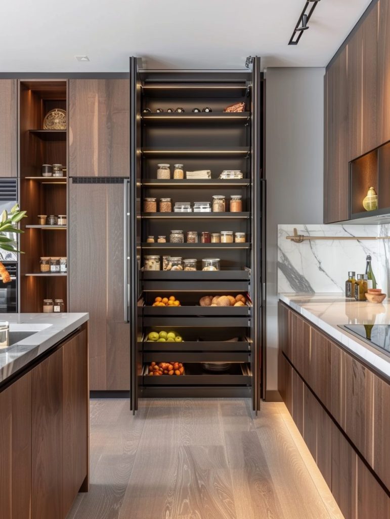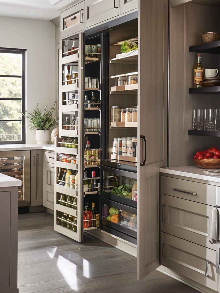 Pull-out pantries are an ideal solution for those who need smart storage without compromising on convenience or accessibility.