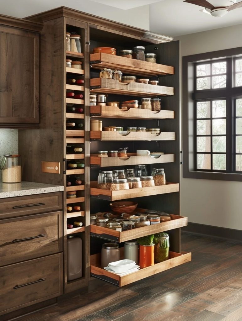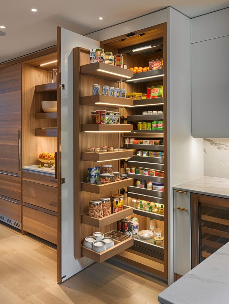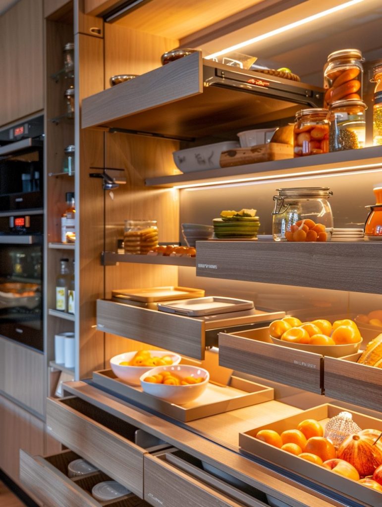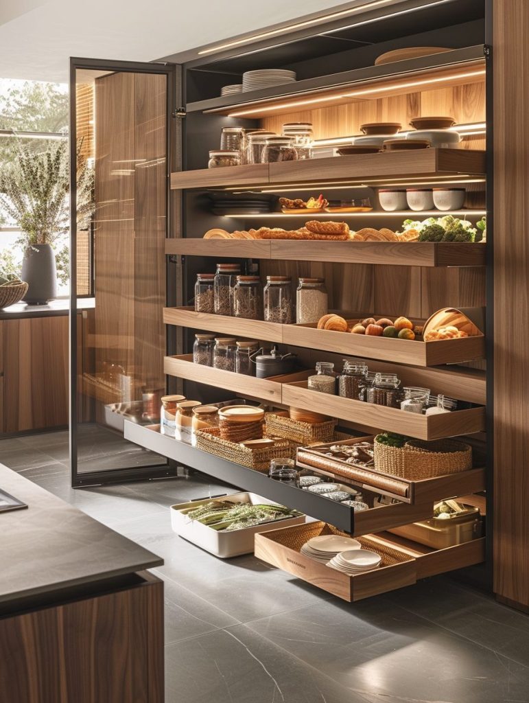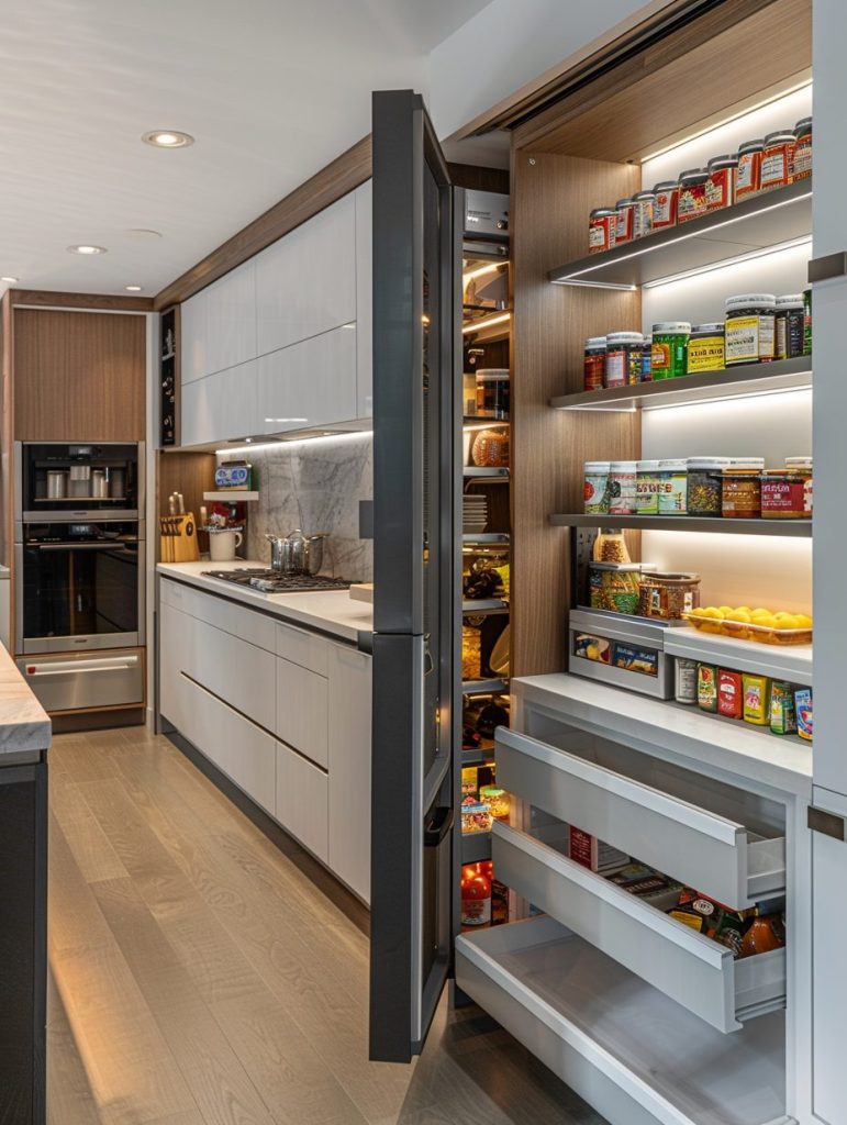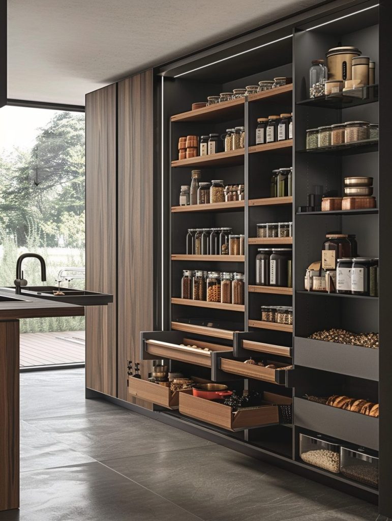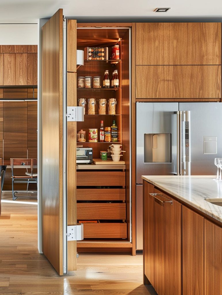 Pull-out pantries are an ideal solution for those who need smart storage without compromising on convenience or accessibility.