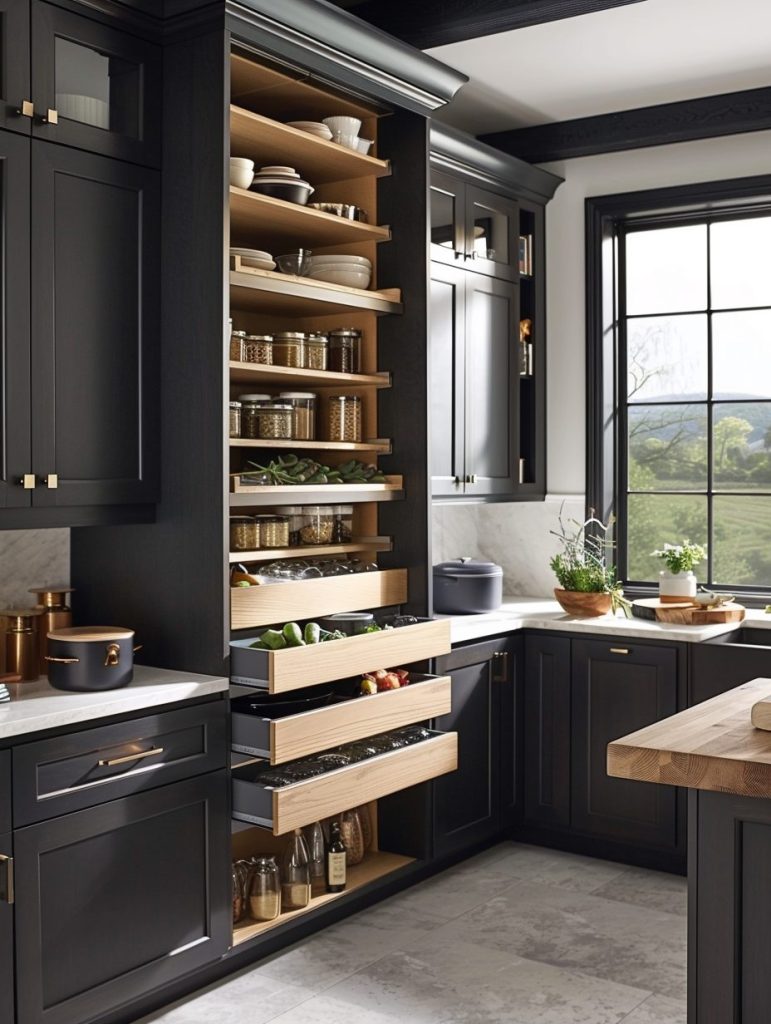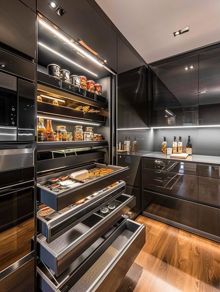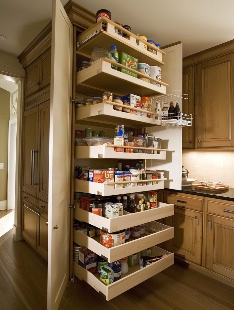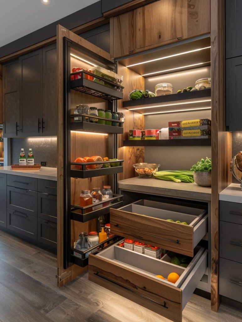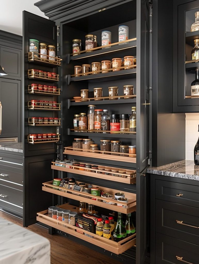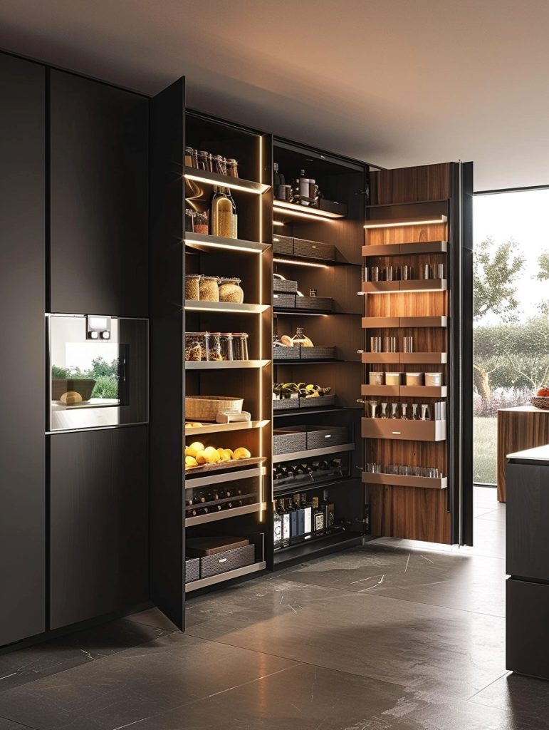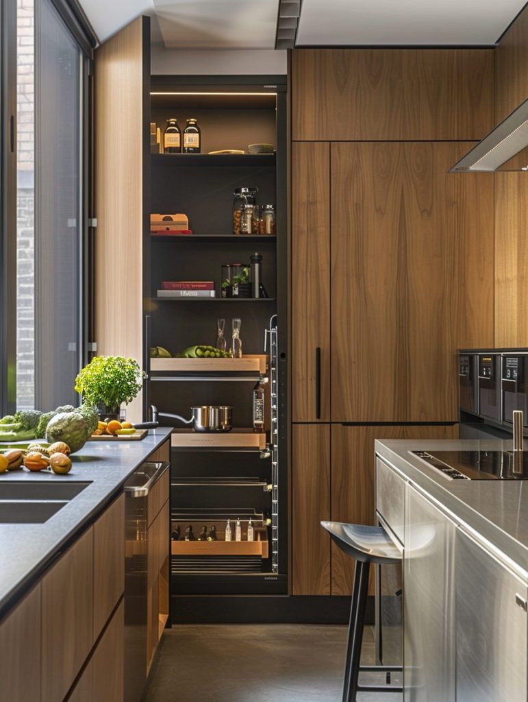 Pull-out pantries are an ideal solution for those who need smart storage without compromising on convenience or accessibility.