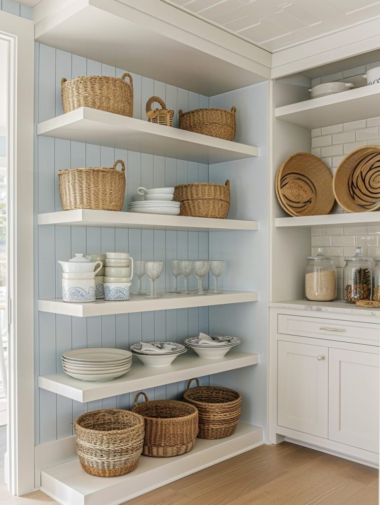 Coastal pantry styles are perfect for those looking to infuse their home with a relaxed, seaside-inspired charm.