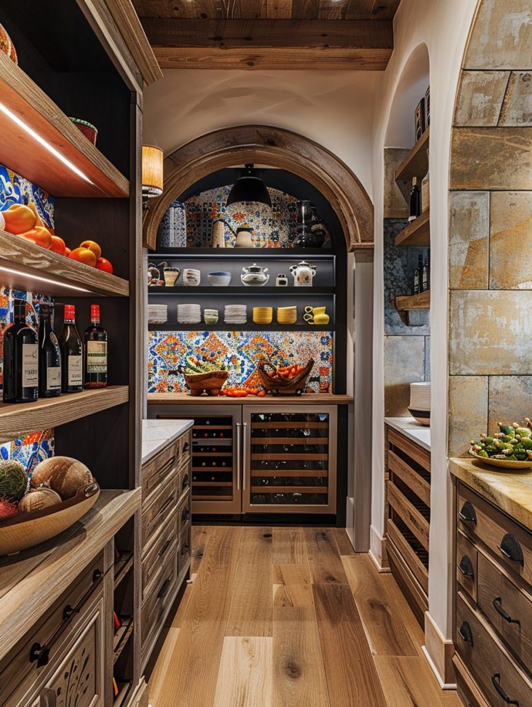 Mediterranean pantry designs infuse your kitchen with a vibrant mix of style and relaxation.