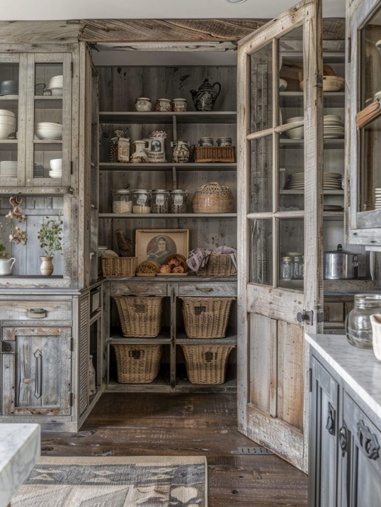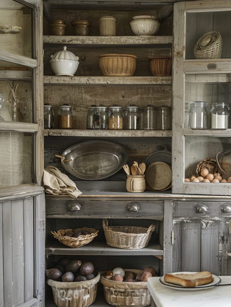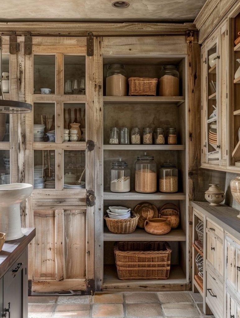 French country pantry cabinets offer a graceful blend of rustic charm and refined elegance.