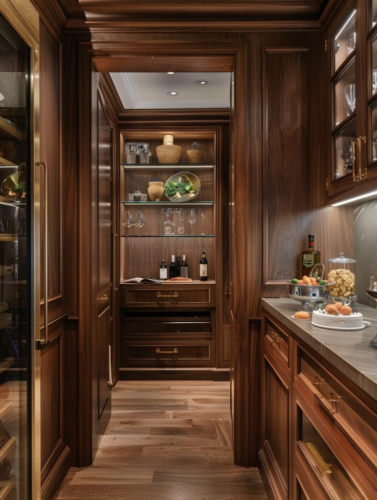 Walk-in pantry ideas bring both luxury and functionality to the kitchen by offering ample space for storage and organization.