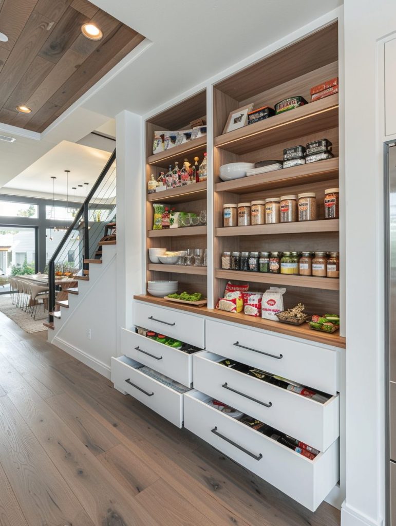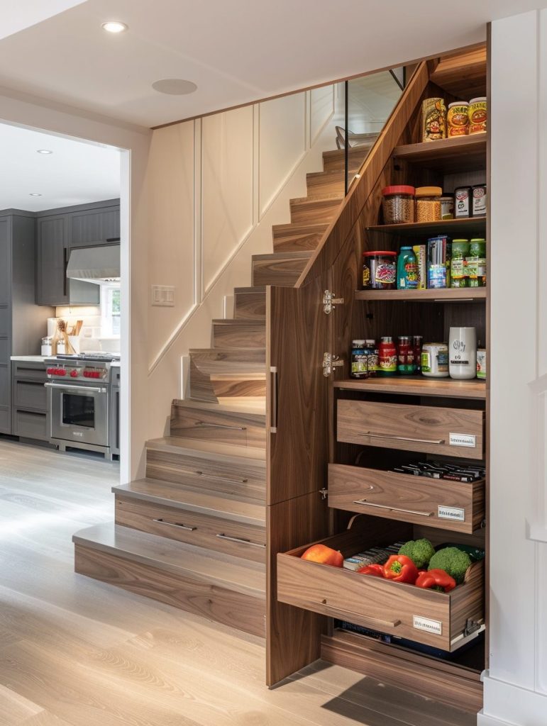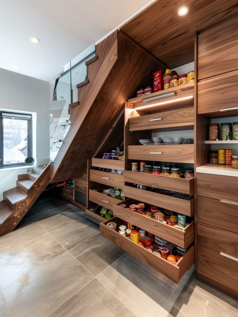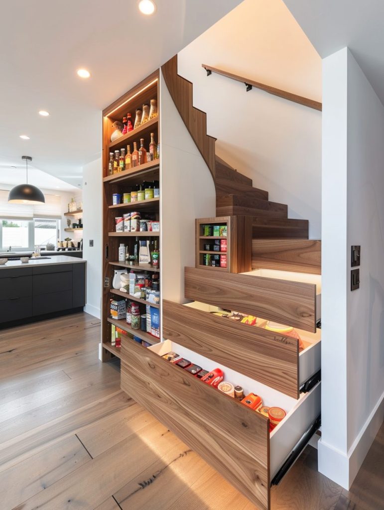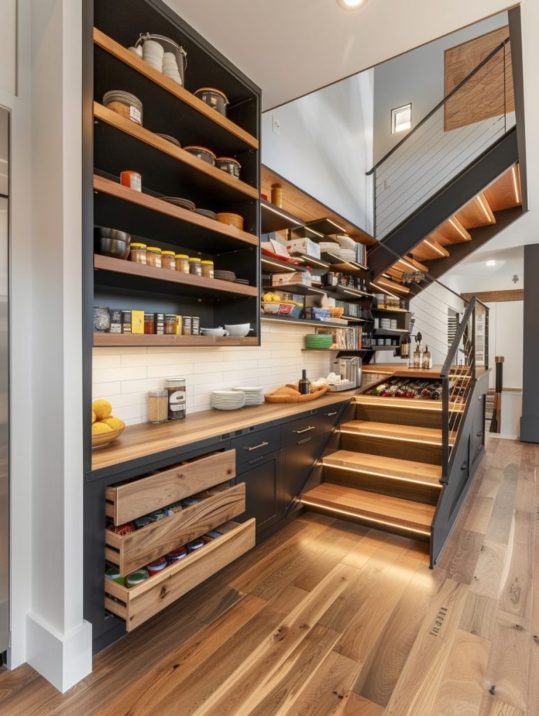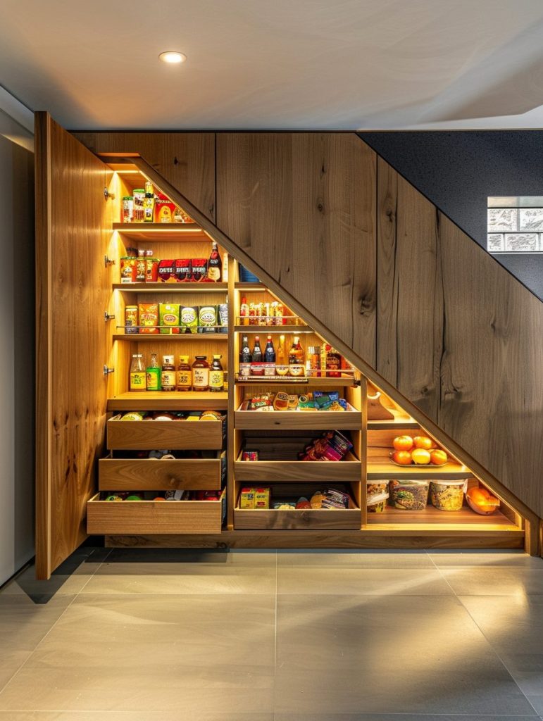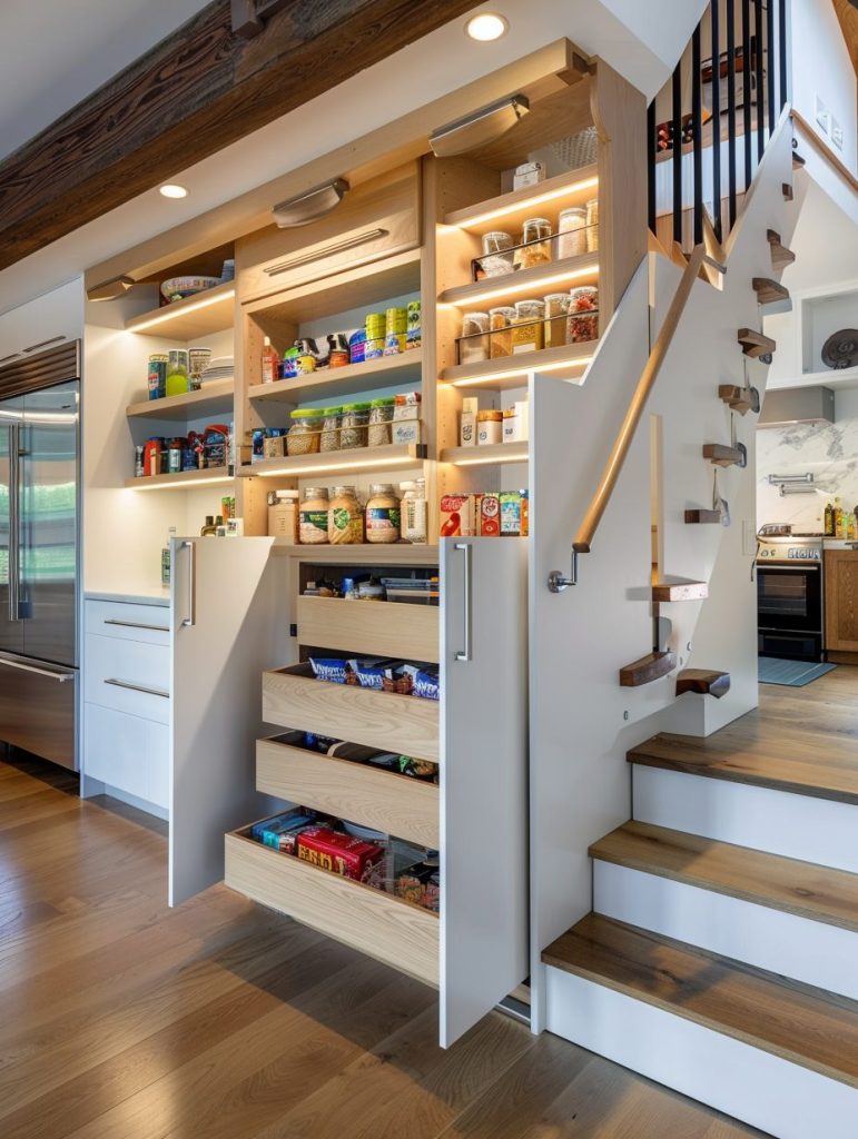 Under-stair pantry designs are a smart and effective way to utilize often-overlooked spaces in the home.