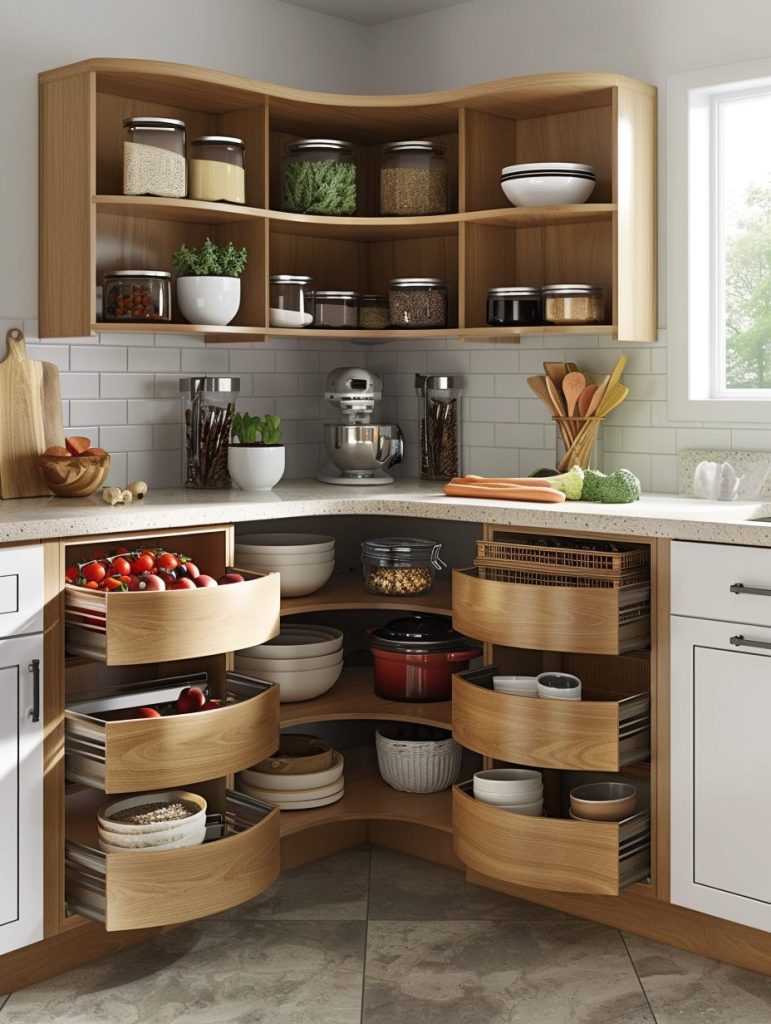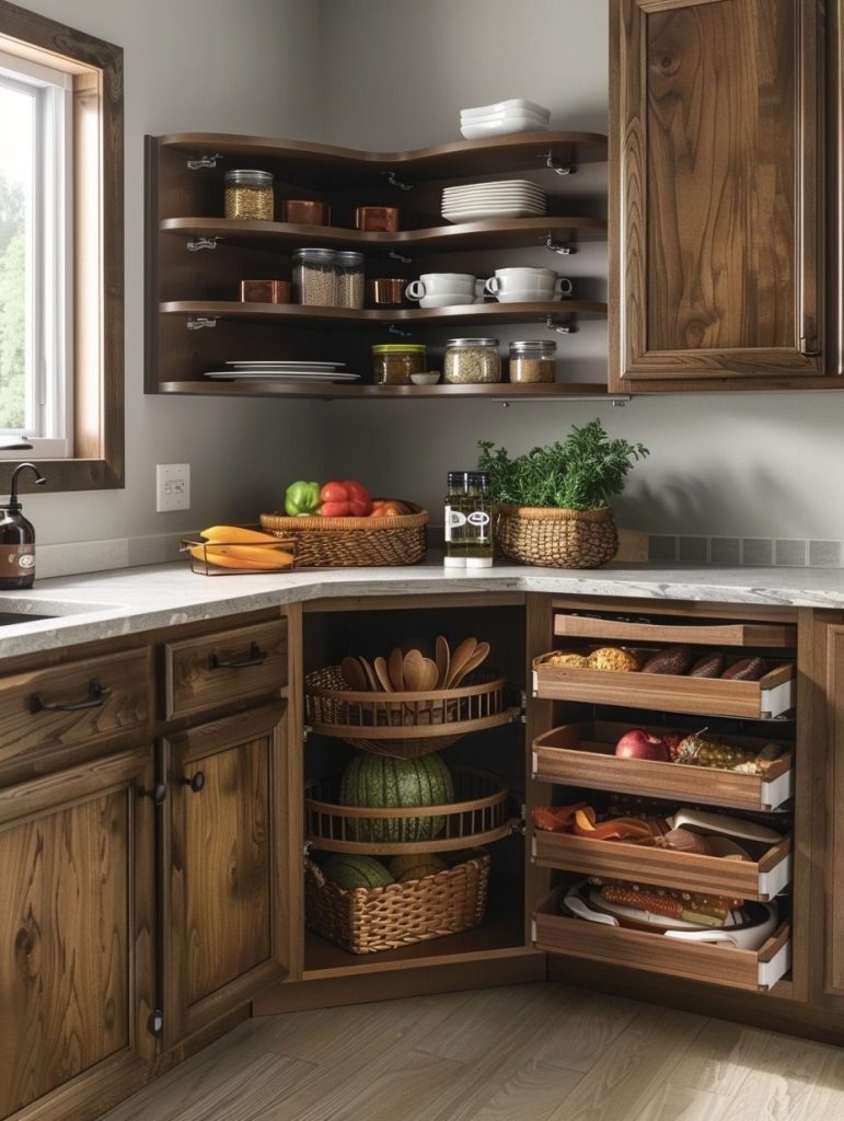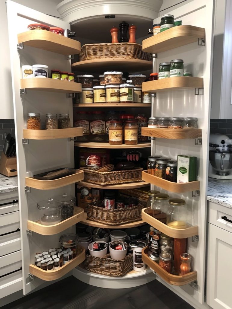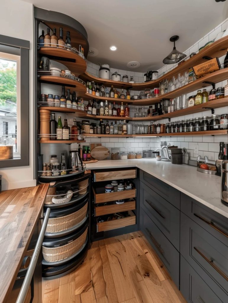 Corner pantry storage solutions are perfect for making the most of underutilized kitchen corners. These specially designed cabinets fit neatly into corner spaces while still offering generous storage options.