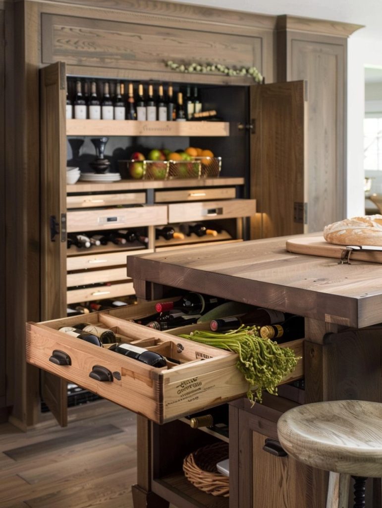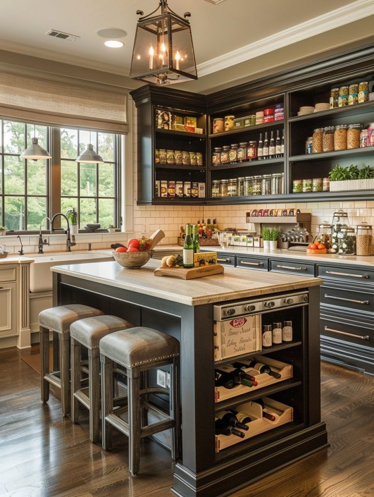 Customization options like wine racks, roll-out compartments, and integrated appliances make pantry islands a central feature that supports both efficient storage and creative cooking.