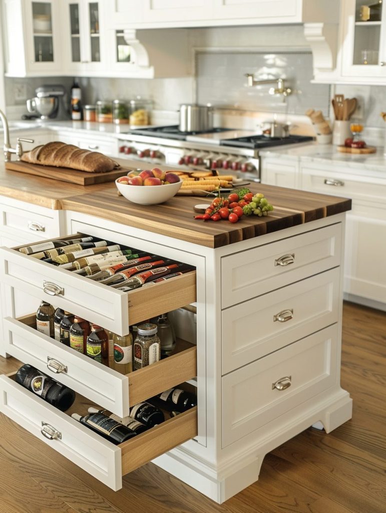 They can also include built-in spice racks, wine storage, and spots for small appliances, creating a highly efficient setup.