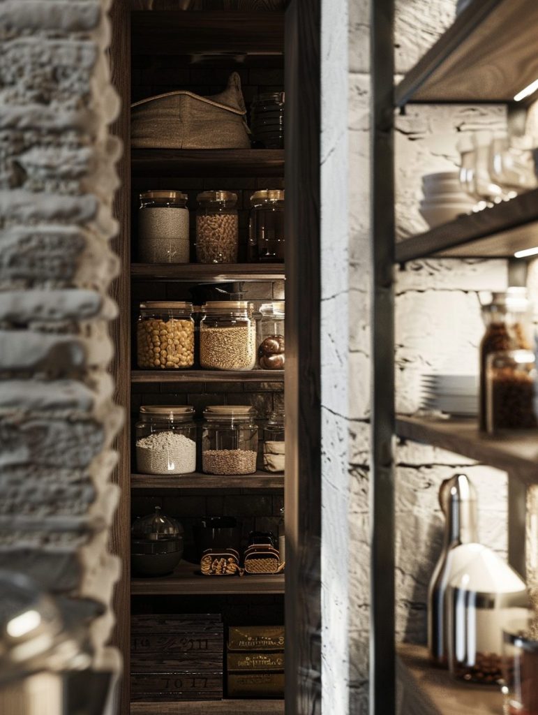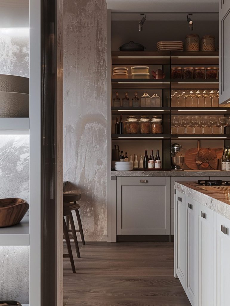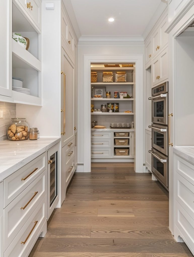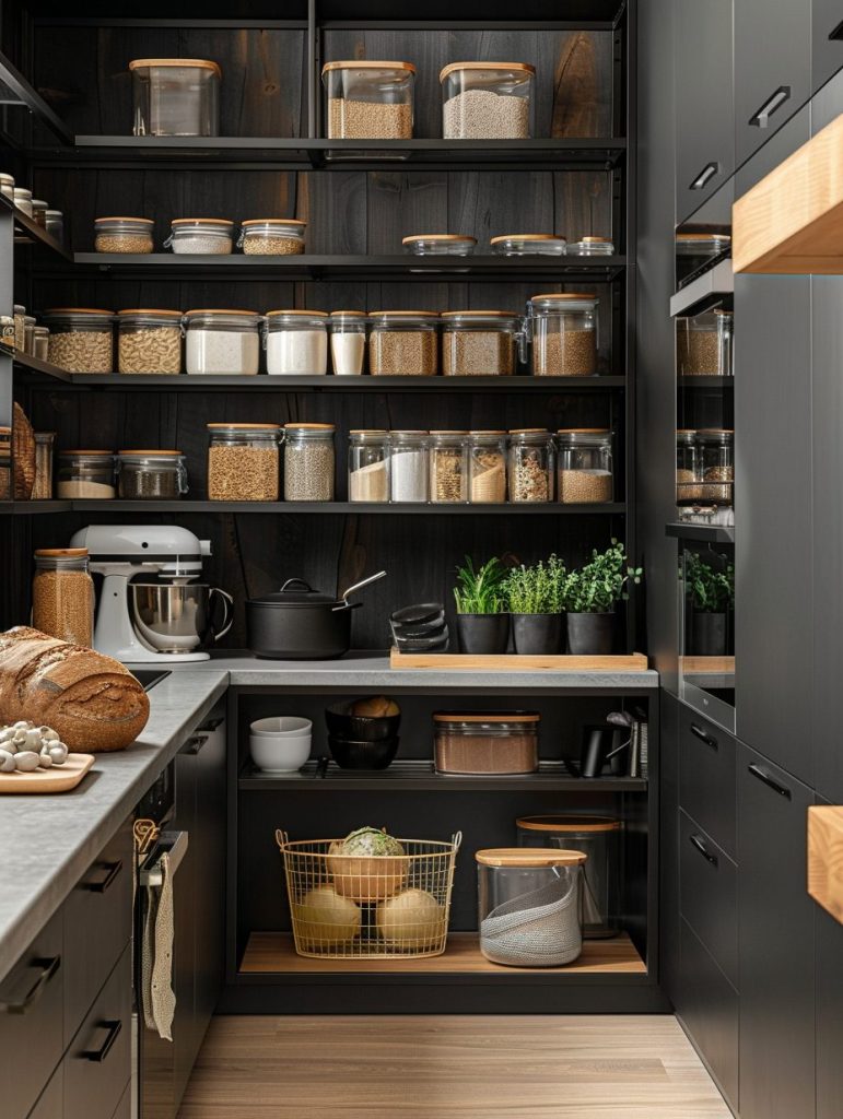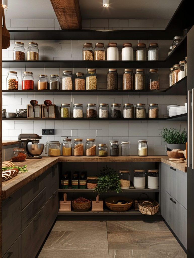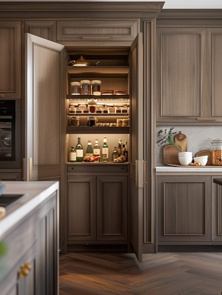 This setup not only enhances the functionality of your pantry but also complements and elevates your kitchen’s overall aesthetic.