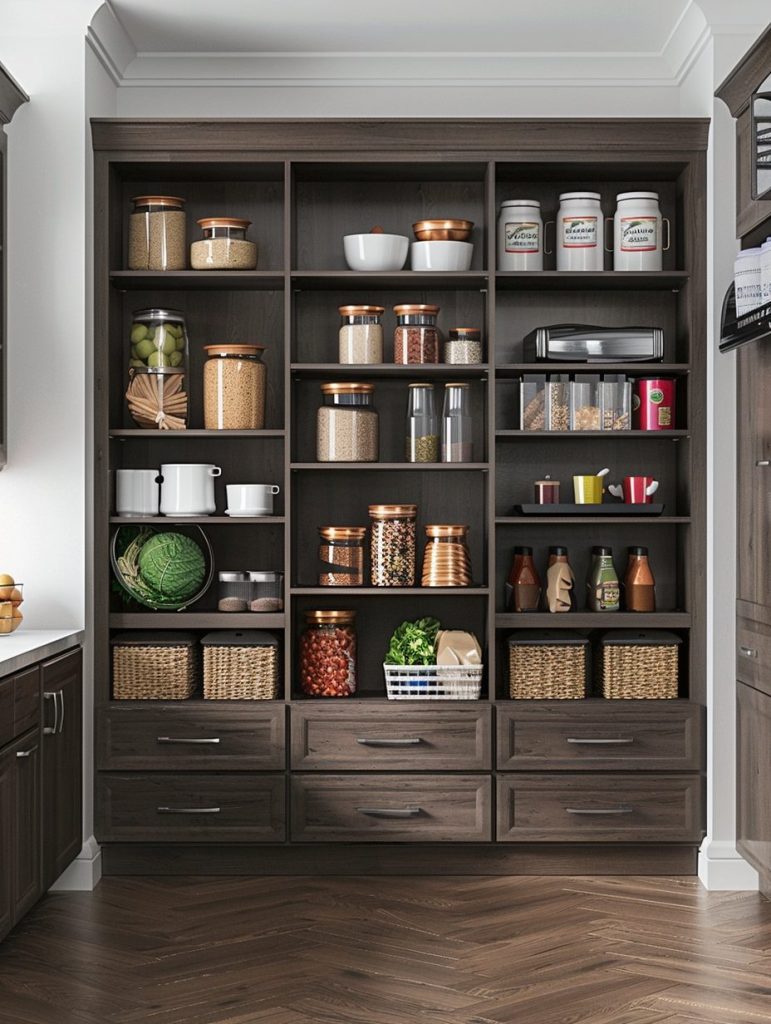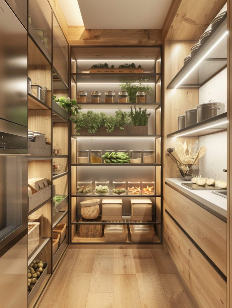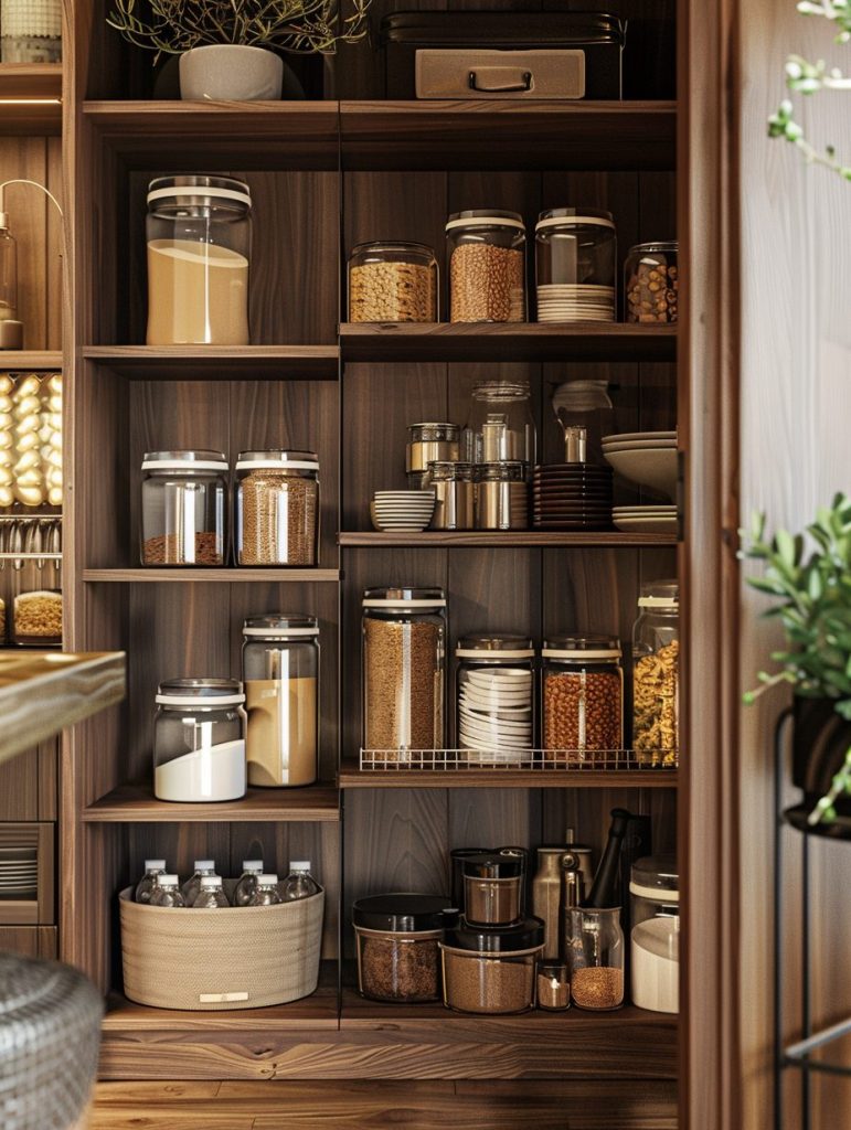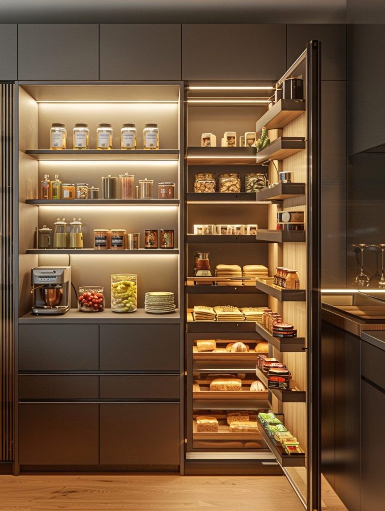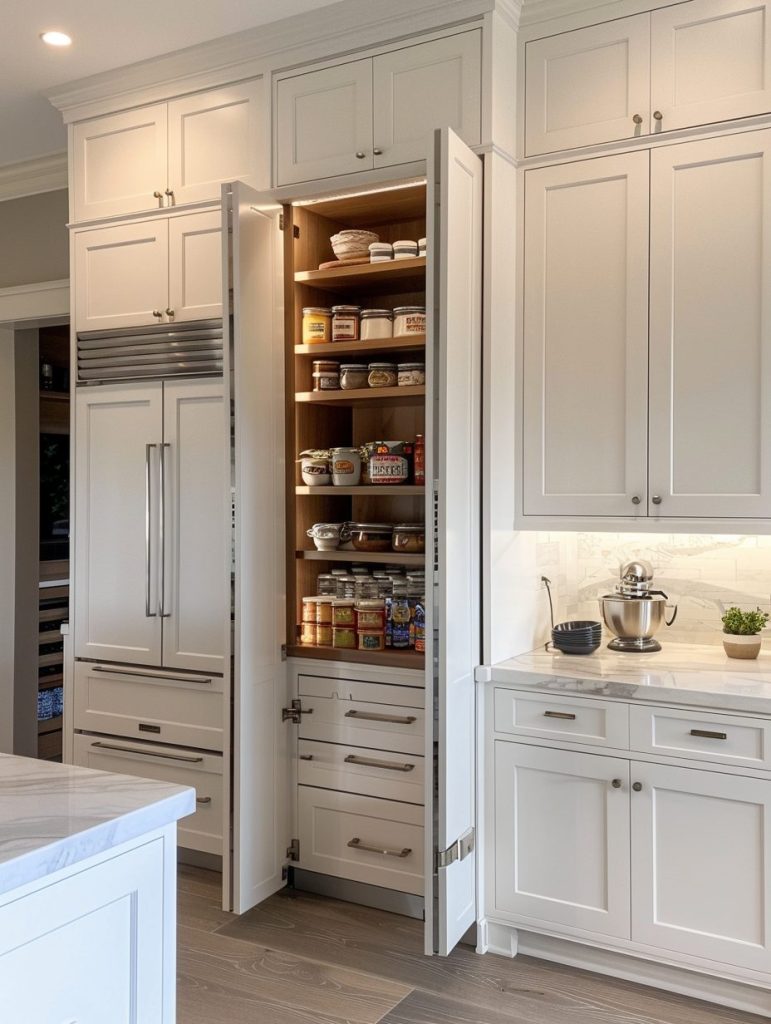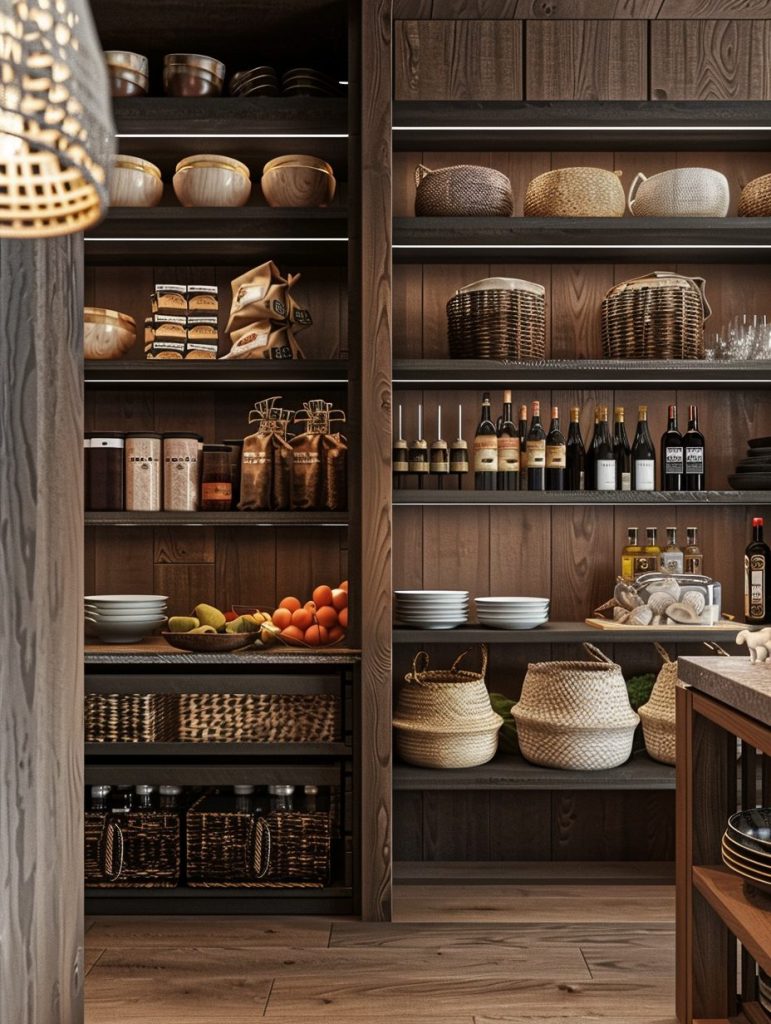 This setup not only enhances the functionality of your pantry but also complements and elevates your kitchen’s overall aesthetic.