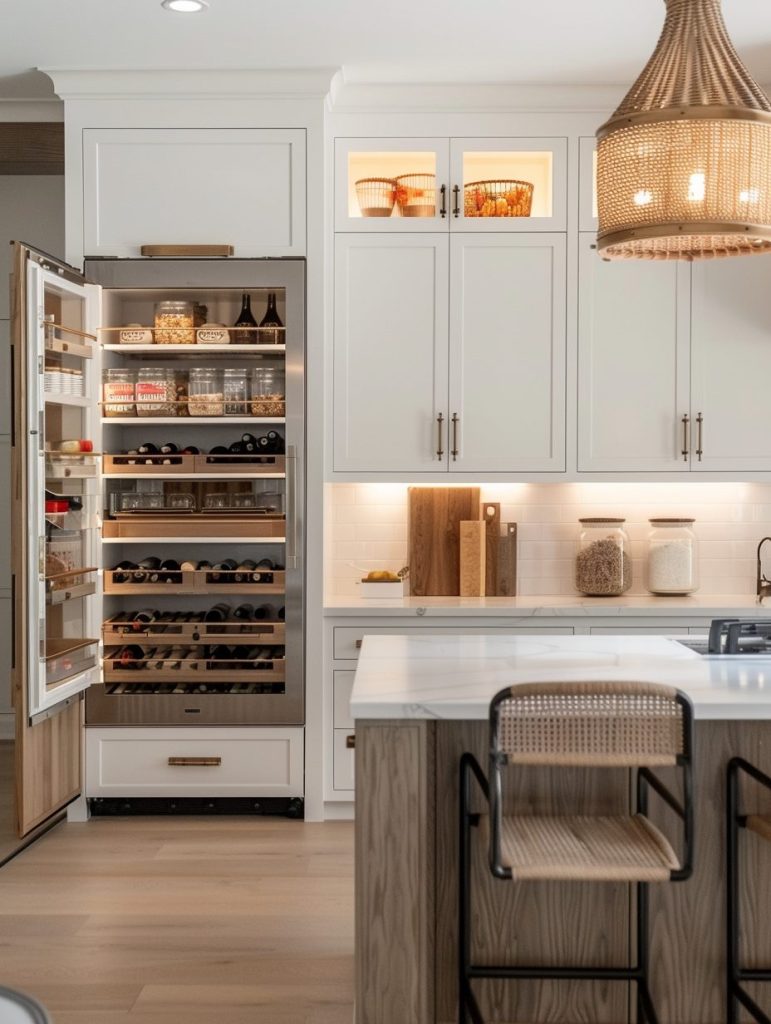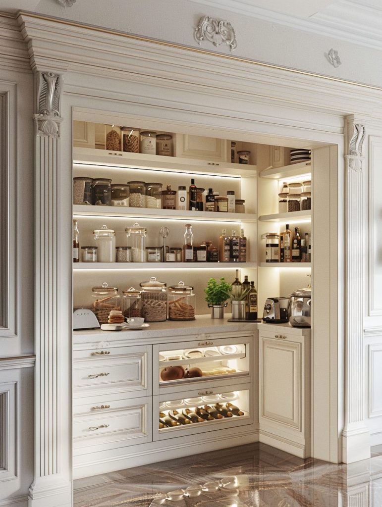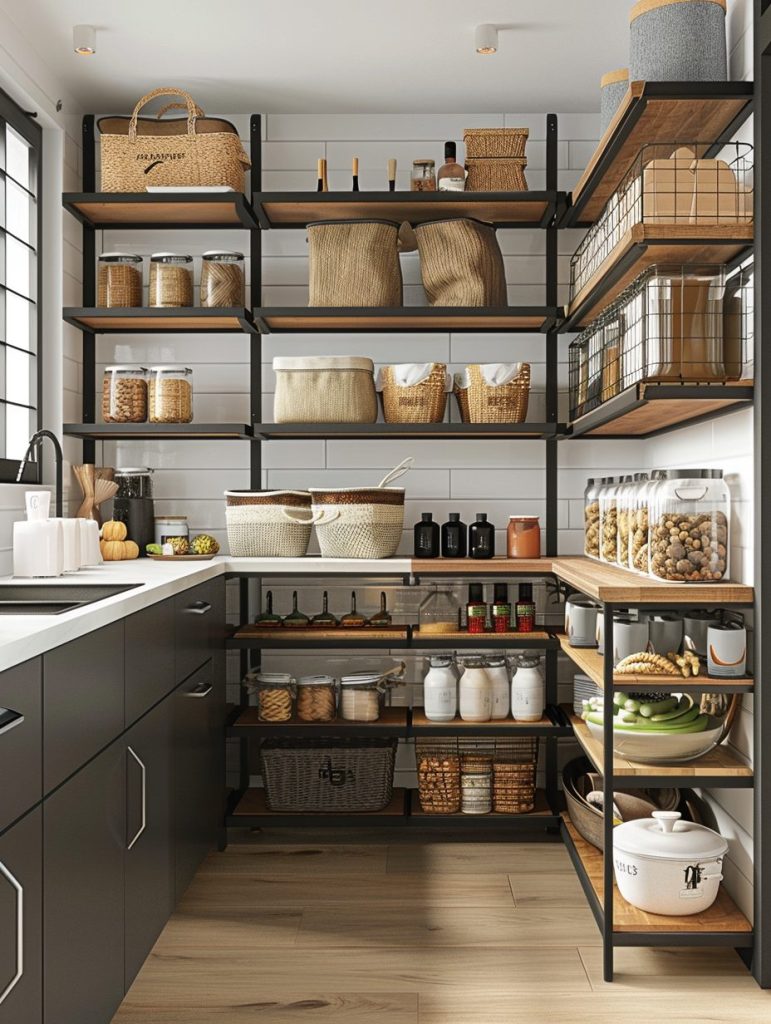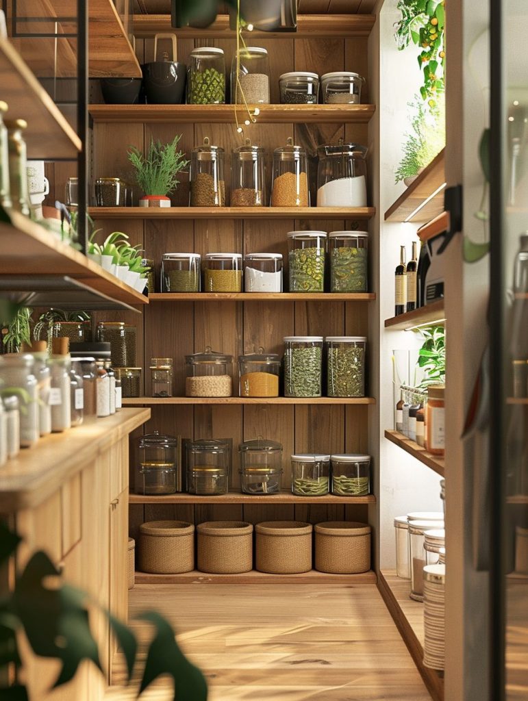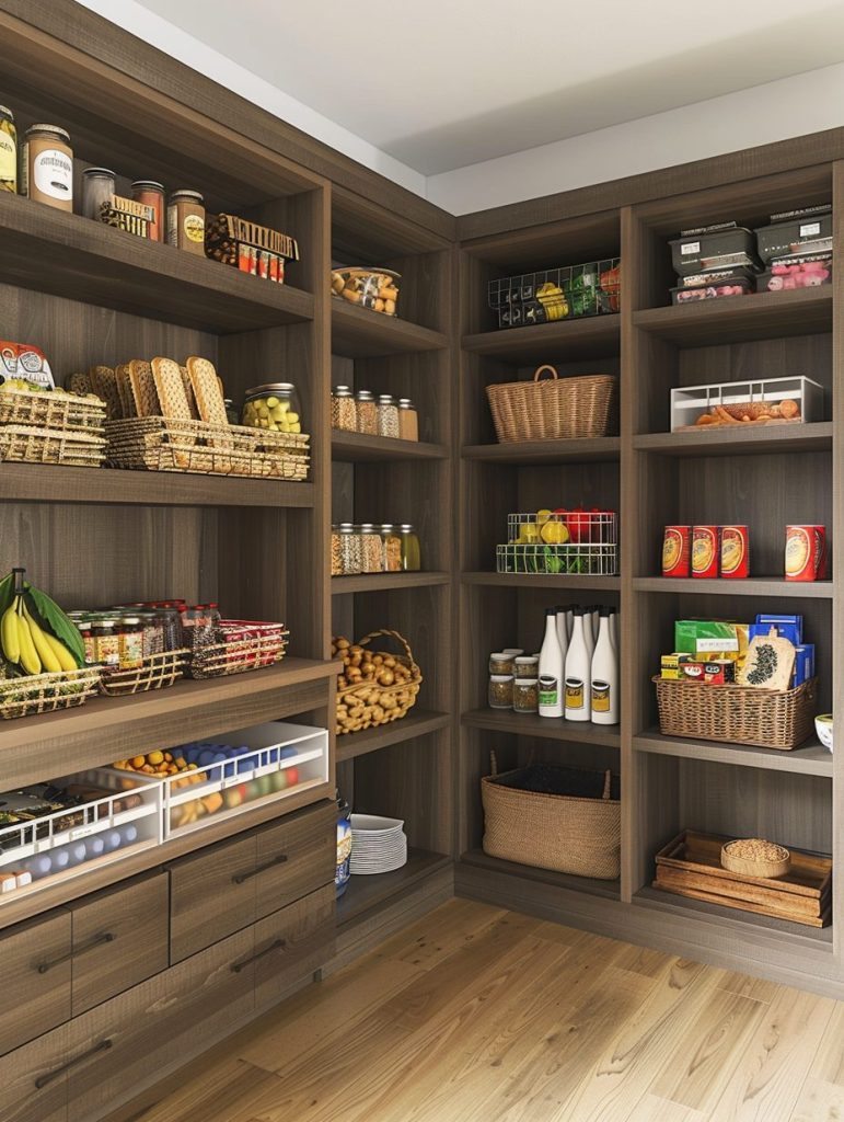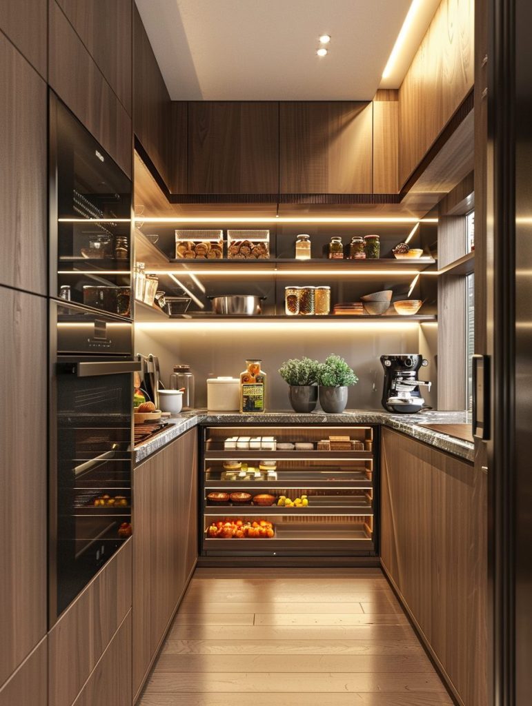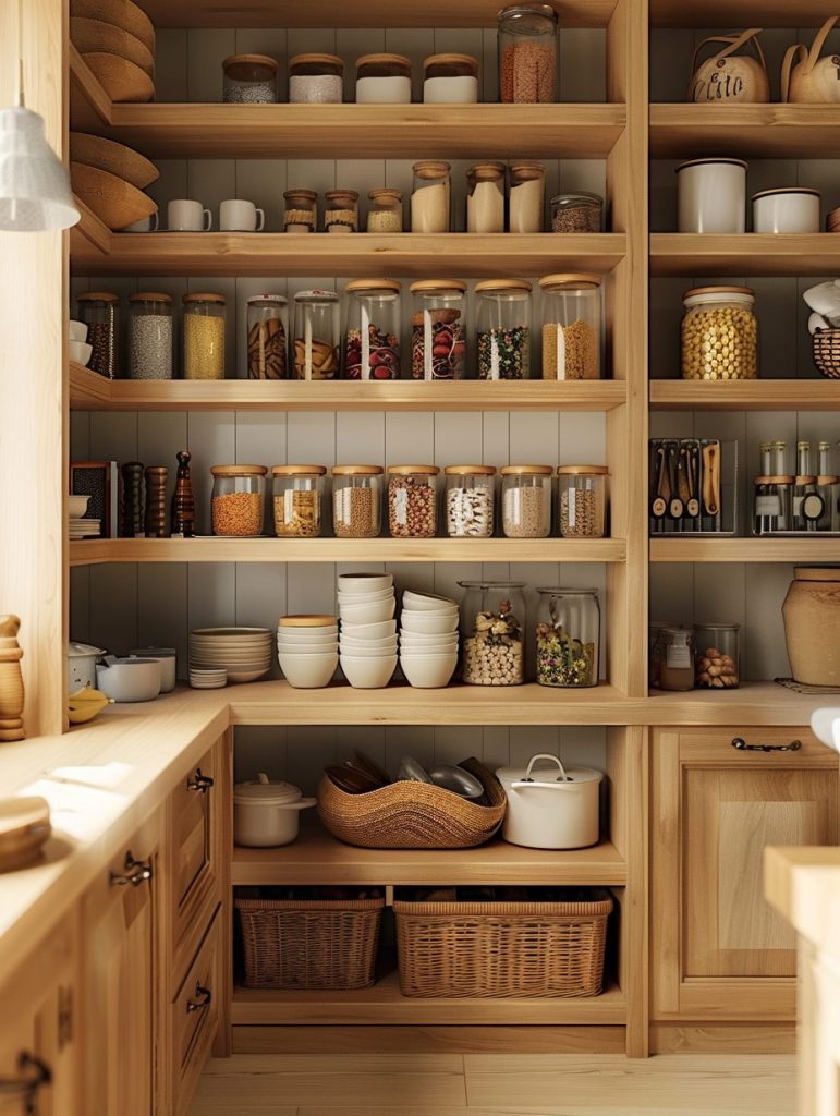 This setup not only enhances the functionality of your pantry but also complements and elevates your kitchen’s overall aesthetic.