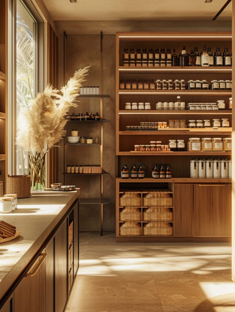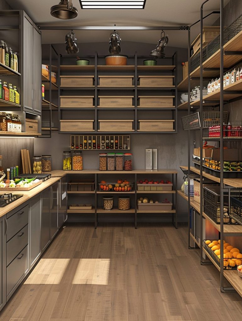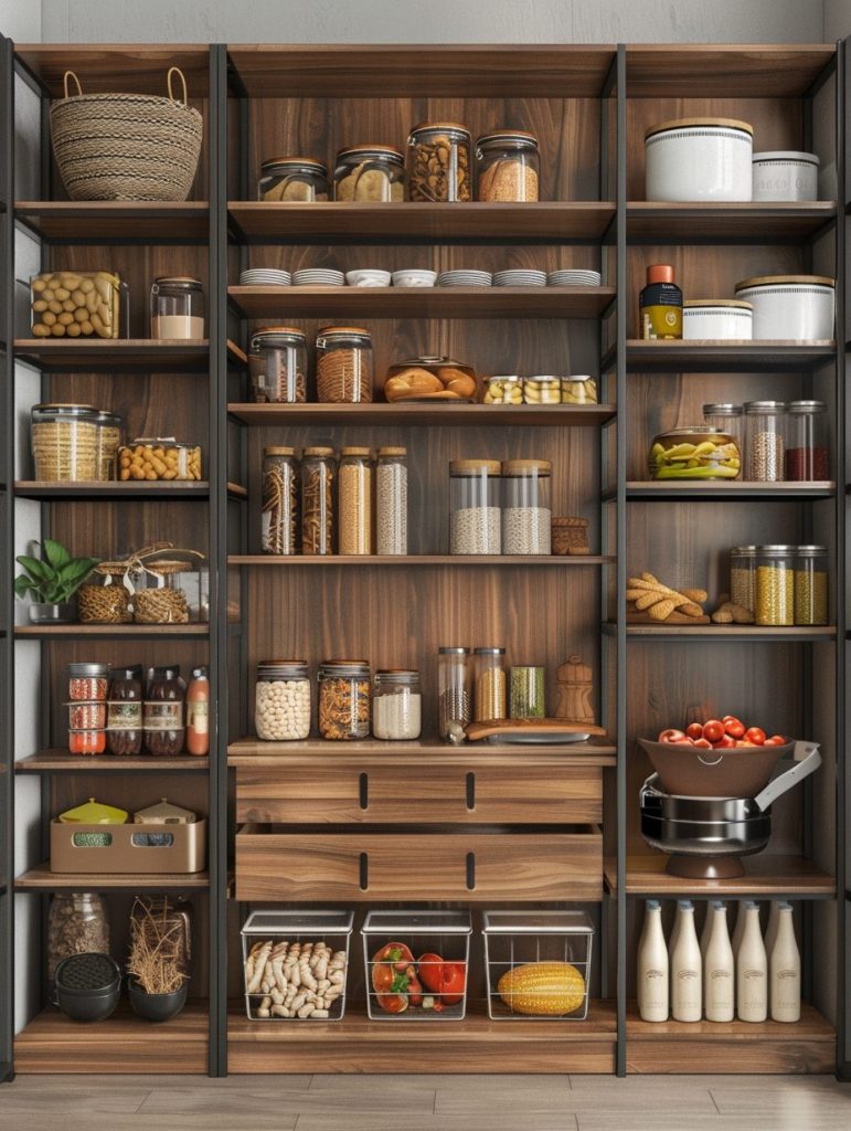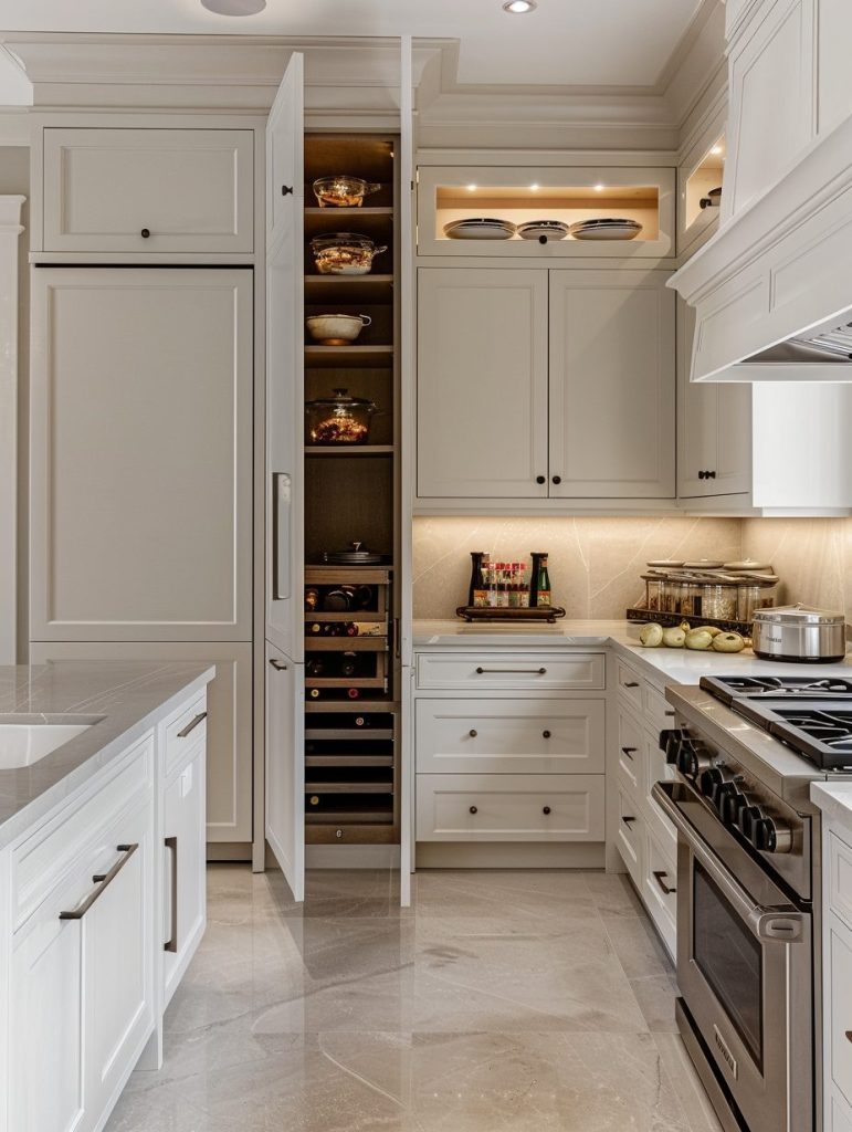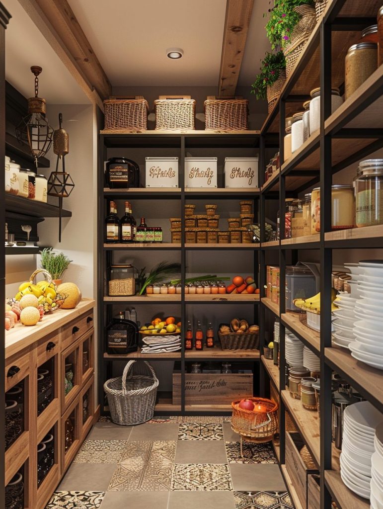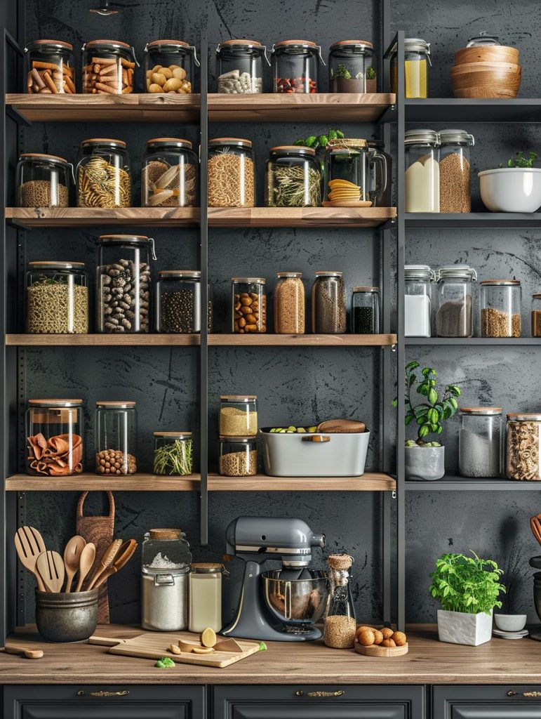 This setup not only enhances the functionality of your pantry but also complements and elevates your kitchen’s overall aesthetic.