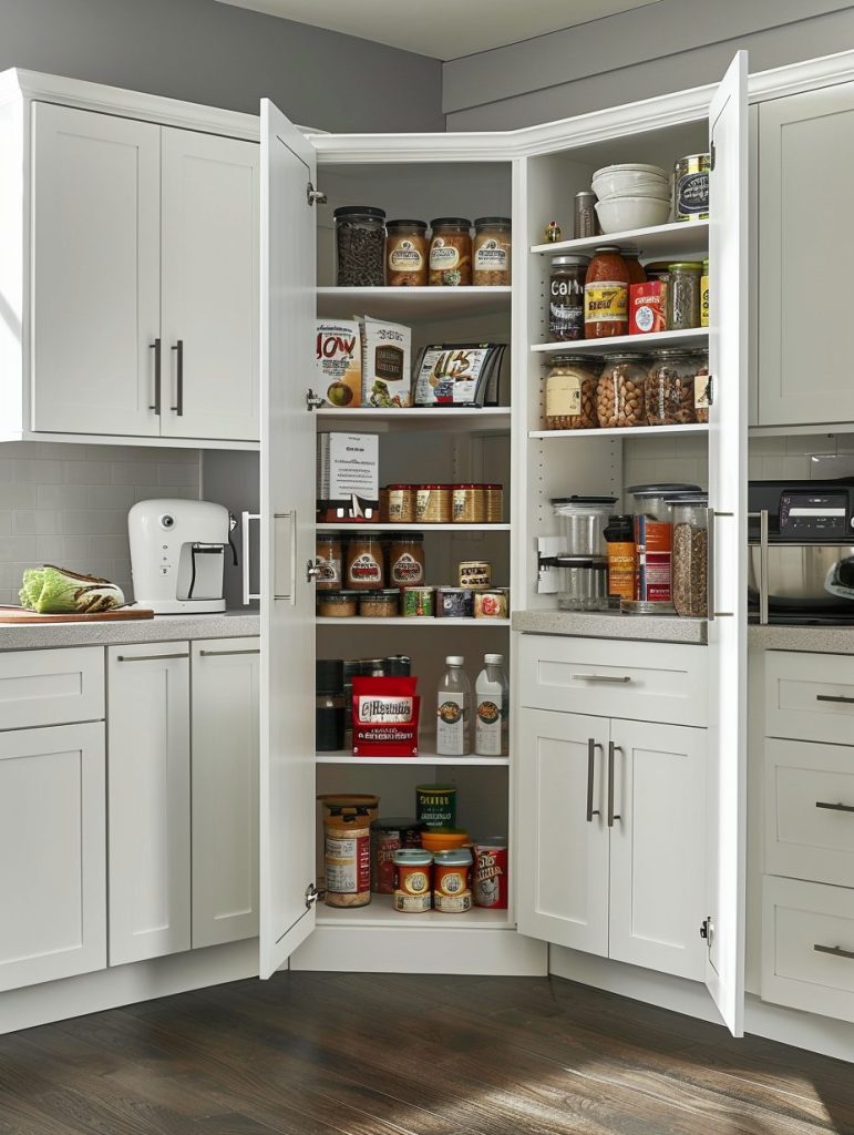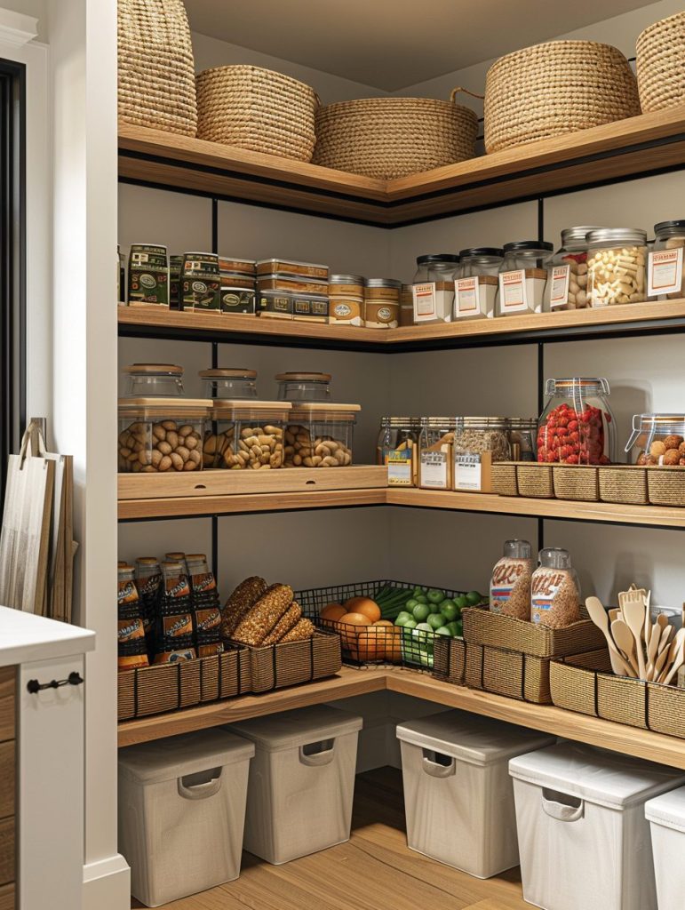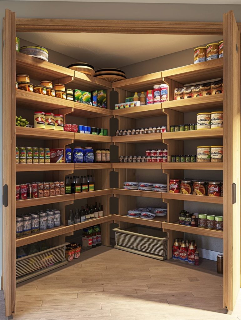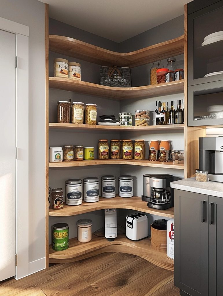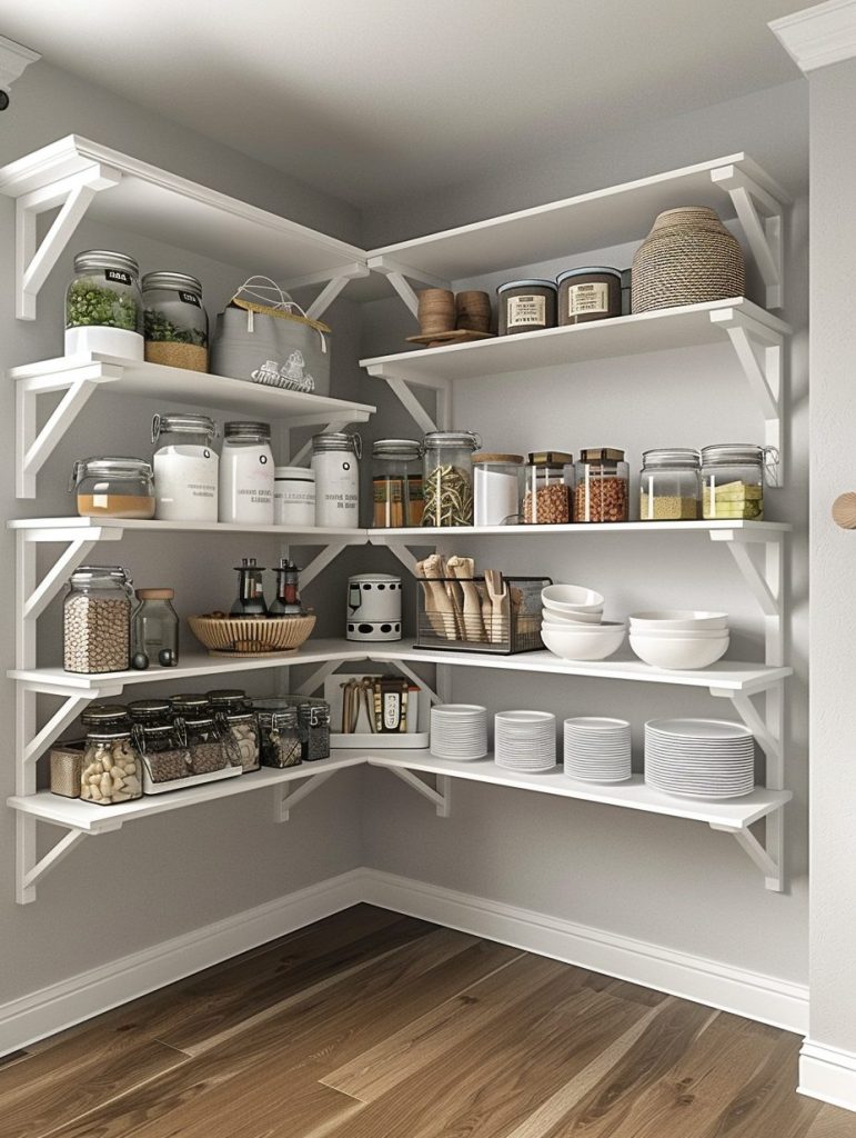 Corner shelving is a smart way to make the most of every inch in your pantry.