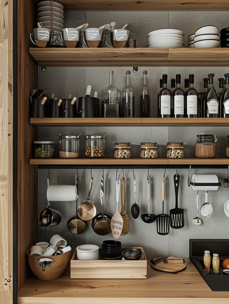 This approach keeps your kitchen looking polished and clutter-free while ensuring easy access to everyday essentials.