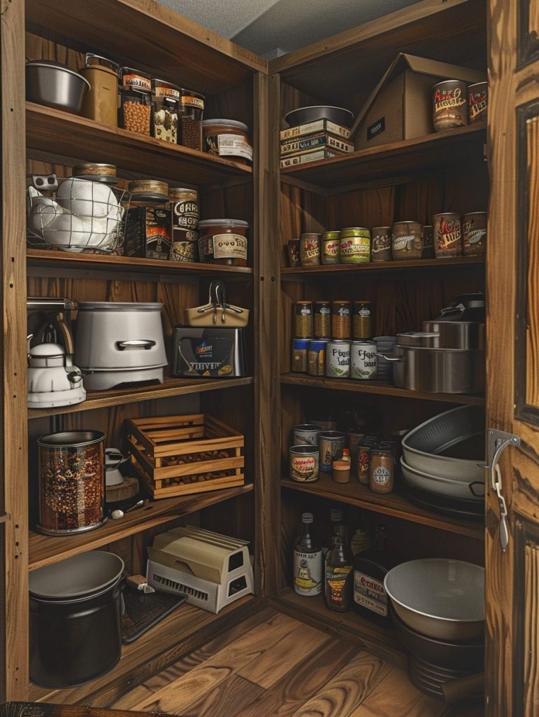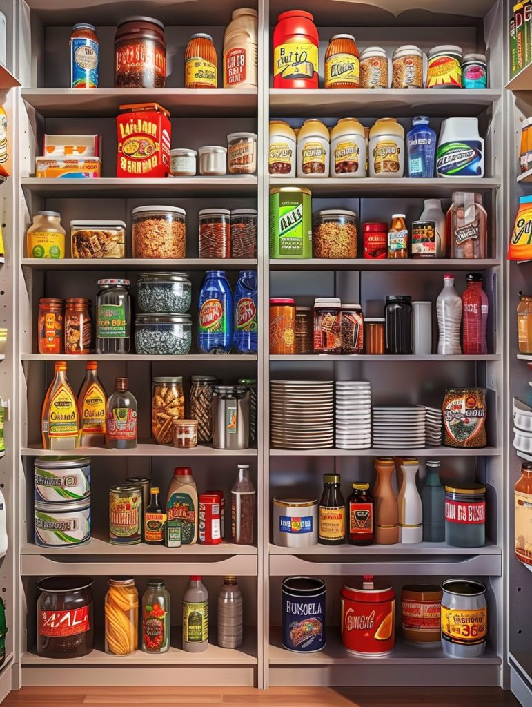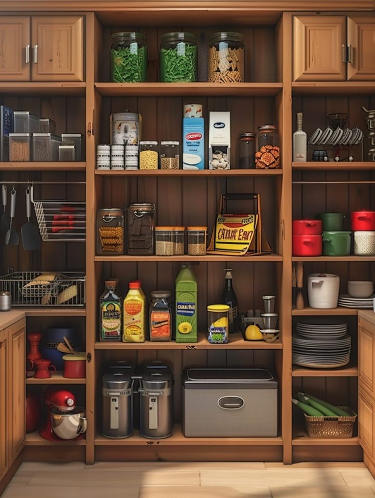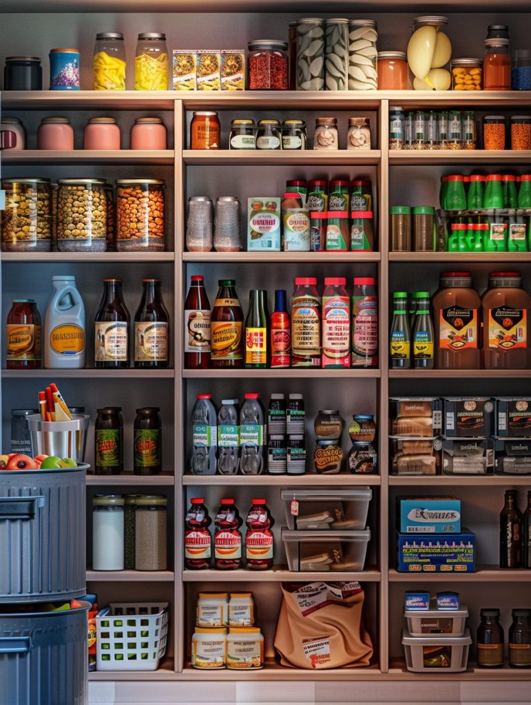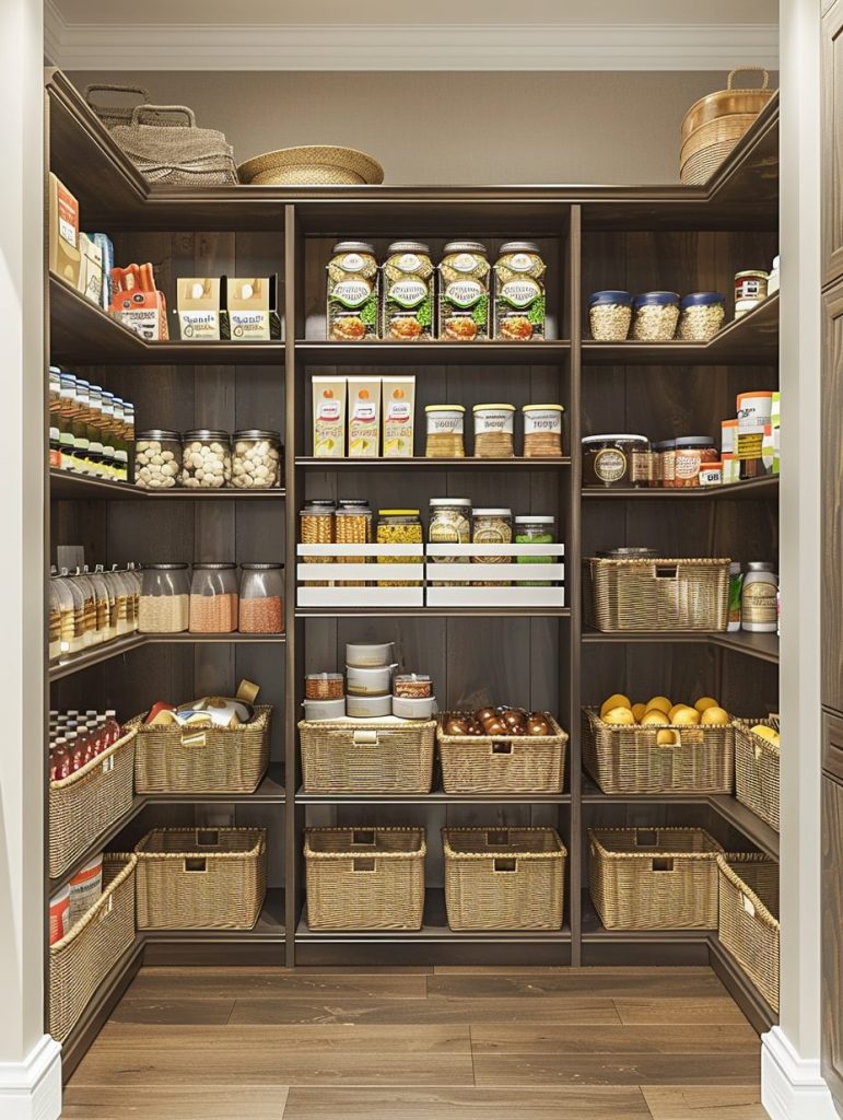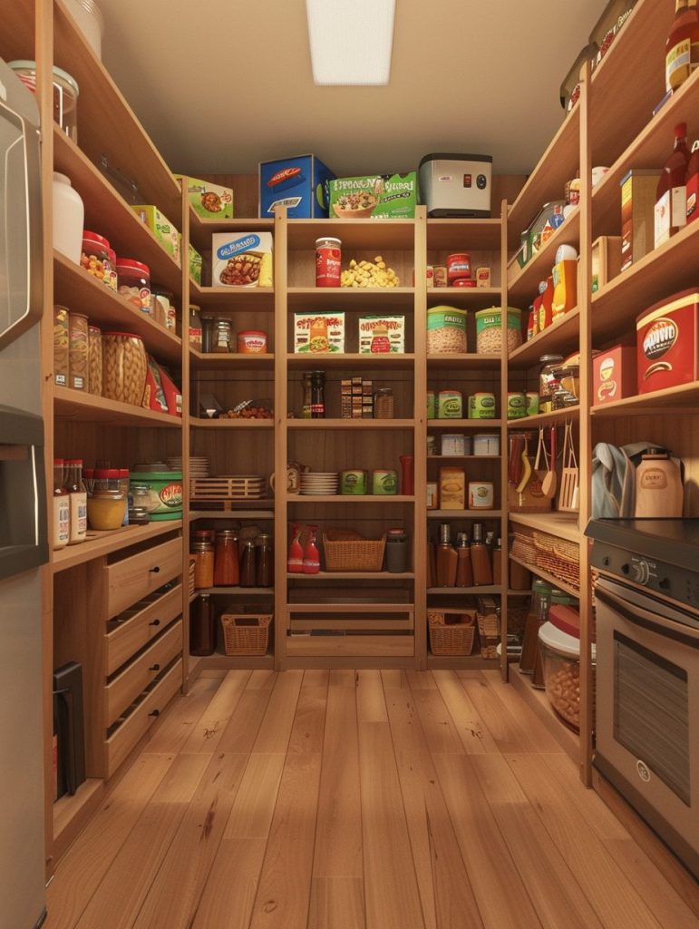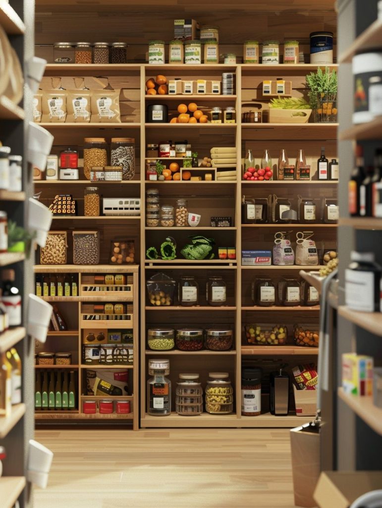 This smart use of space helps maintain a tidy and clutter-free pantry.
