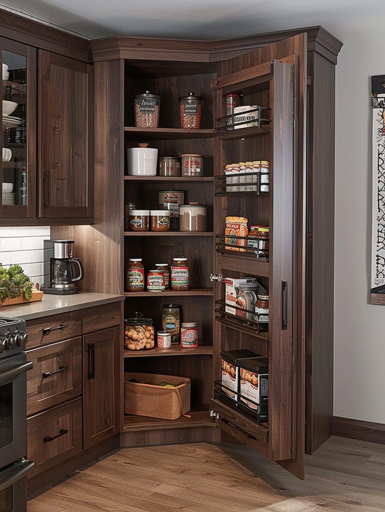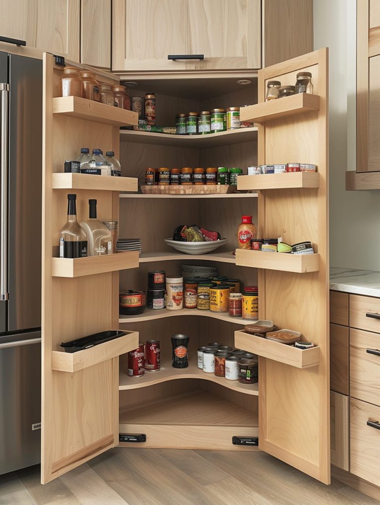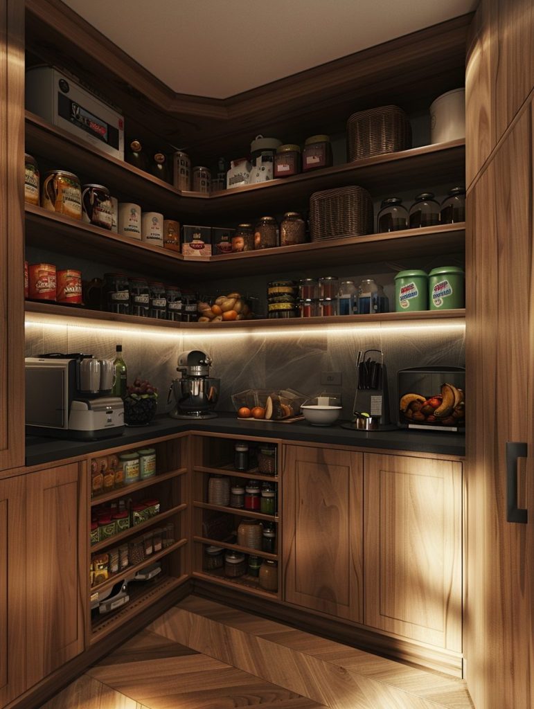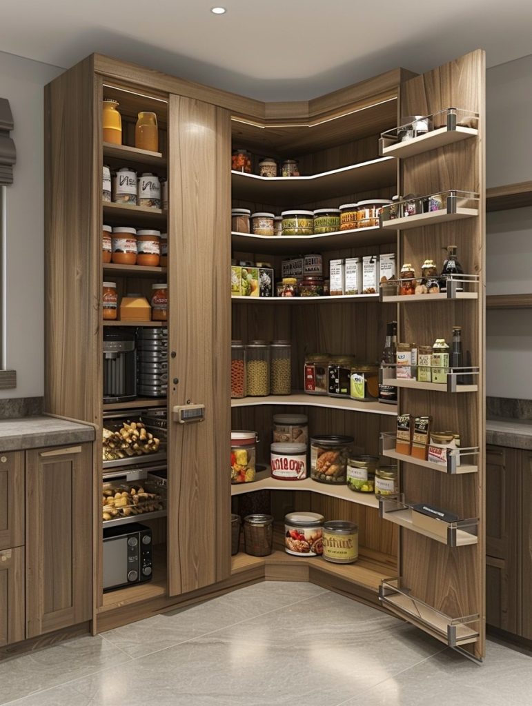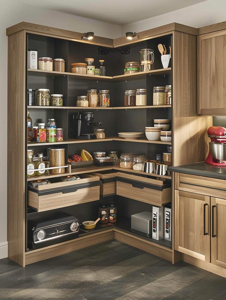Space-saving corner units are an ideal way to make the most of unused pantry corners.