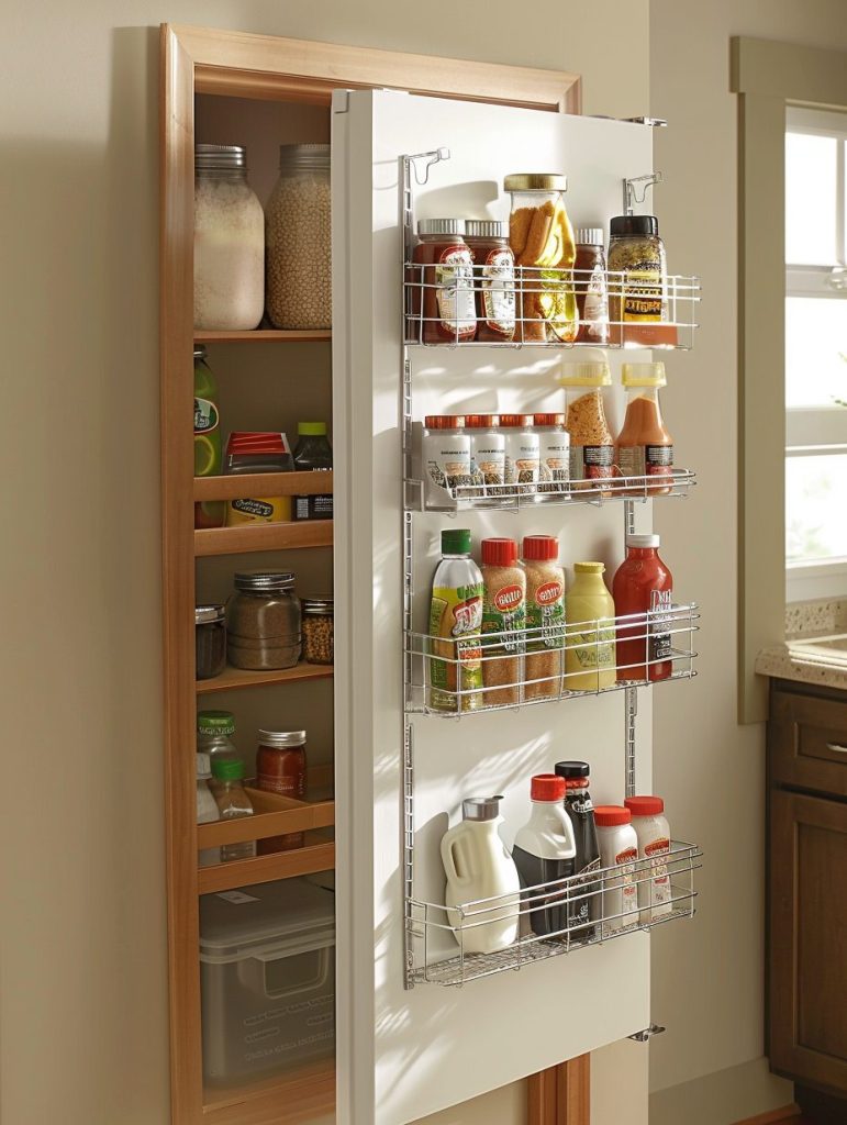 They can hold everything from spices and condiments to cleaning supplies in a neat and accessible manner.
