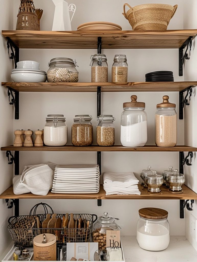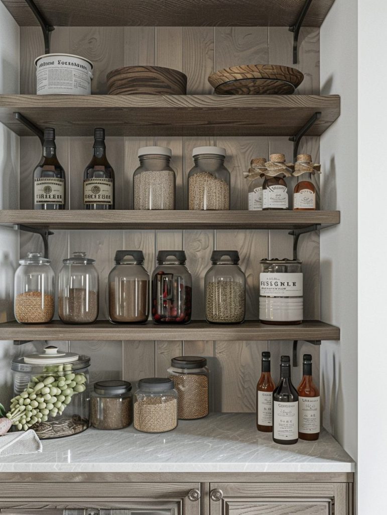 Adding floating shelves to your pantry can instantly create a more open and spacious feel. These shelves are easy to mount and ideal for storing everyday essentials within reach.