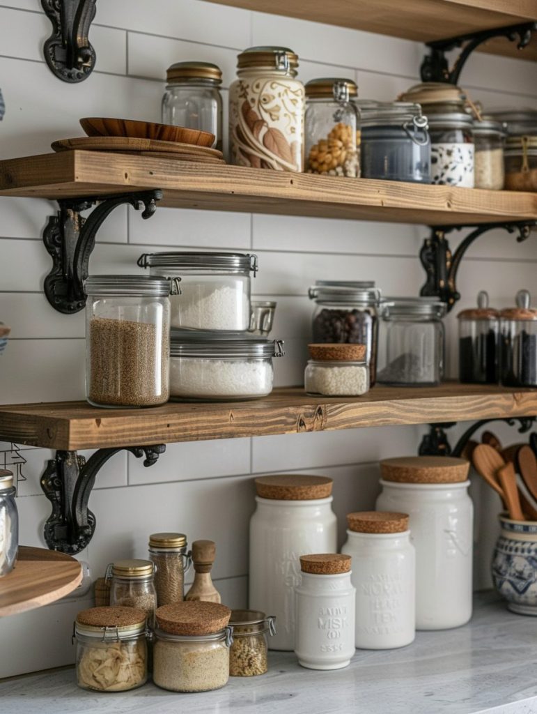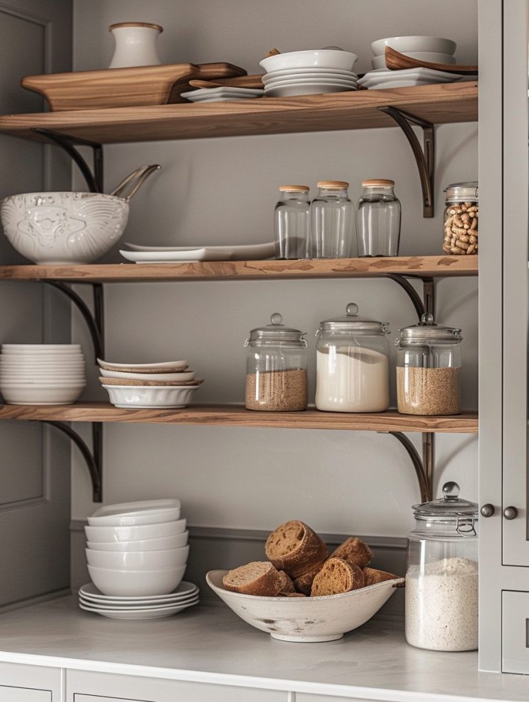Open shelving adds a decorative touch to your pantry while keeping items easily accessible.