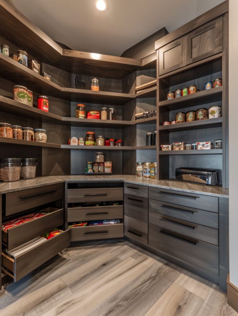 Corners in pantries often go underutilized, but with the right solutions, they can become incredibly efficient.