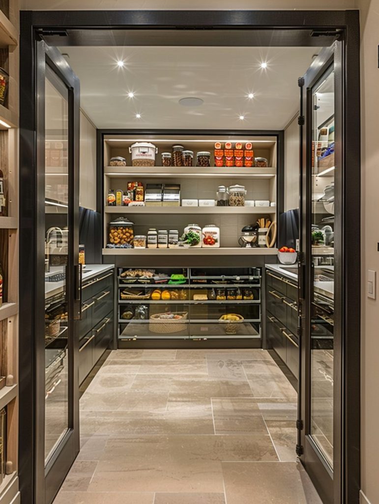 By integrating tech, you can transform a traditional pantry into a streamlined, modern storage hub.