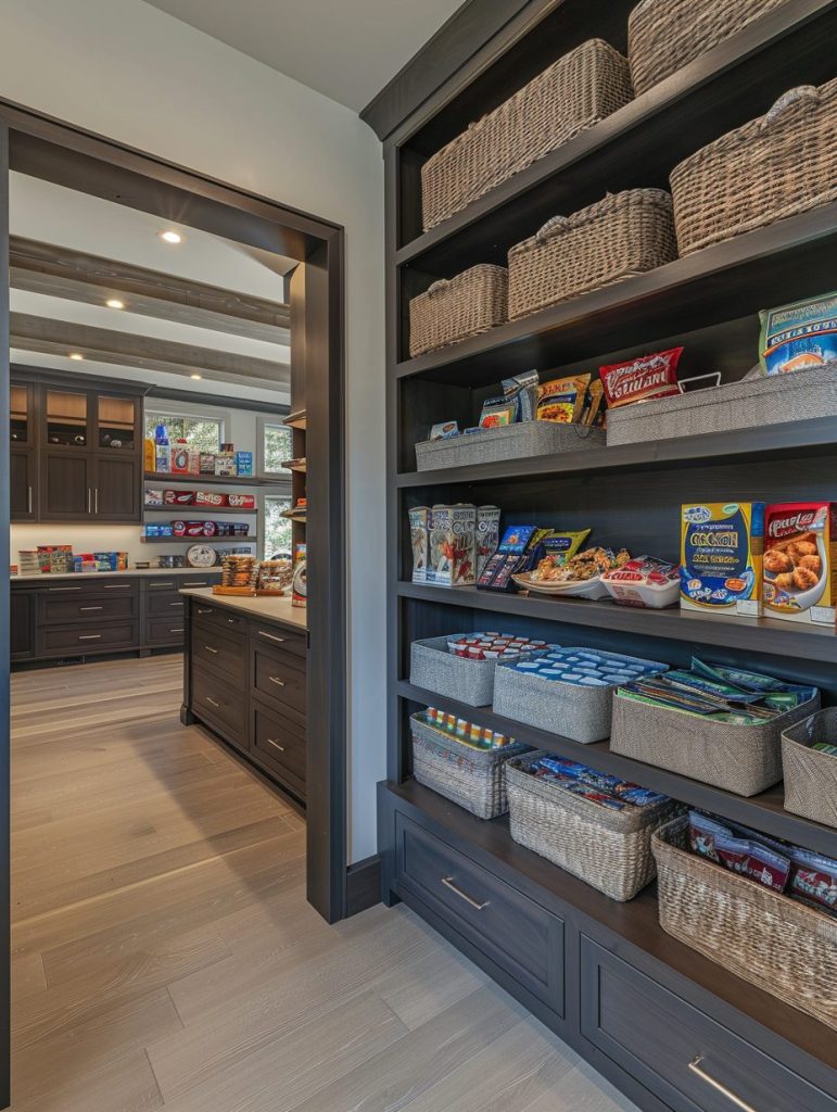 Incorporating seasonal storage into your walk-in pantry helps keep things organized year-round. Reserve dedicated space for holiday or seasonal ingredients, rotating them as needed.