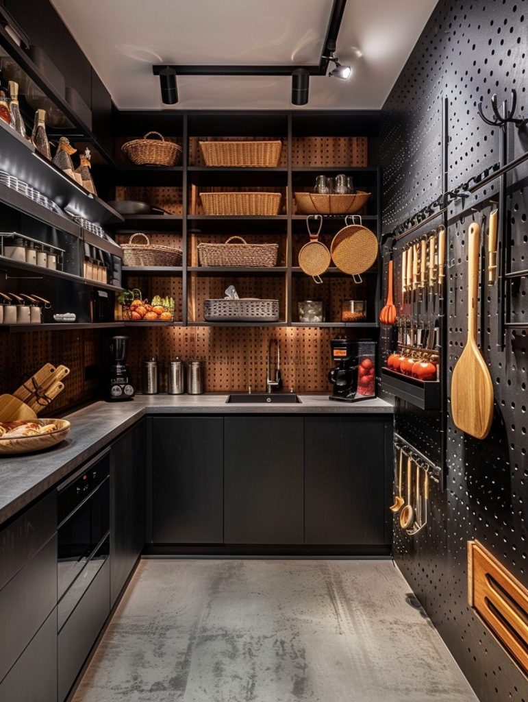 Wall space in walk-in pantries is often underutilized, yet it offers valuable storage potential. Use pegboards or wall-mounted racks to hang utensils, pots, pans, and baskets, freeing up your shelves.